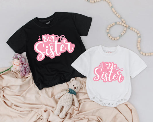 Adorable Big Sister Little Sister Matching Outfit Cute Pink Bow Toddler Shirt Baby Bubble Romper Sister Announcement Gift for Girls