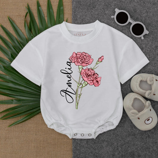 Wildflower Baby Girl Romper 'In Bloom' Take Home Outfit Personalized Birth Month Flower Baby Shower Gift Newborn Girl Clothes