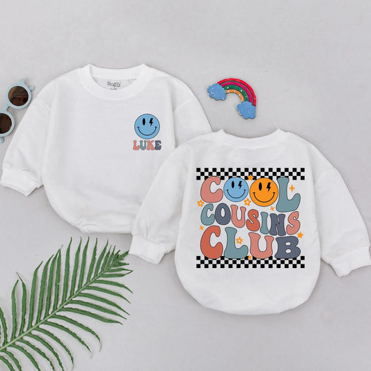Cool Cousins Club Romper Set: Retro Smiley Face Design Baby & Toddler Outfit for Cousins, Newborn Shower Gift, Gender Neutral