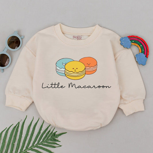 Little Macaroon Romper with Cute French Macaron Design Baby Bodysuit Pastry Food Pun Outfit Minimalist Newborn Girl Boy Baby Shower Gift