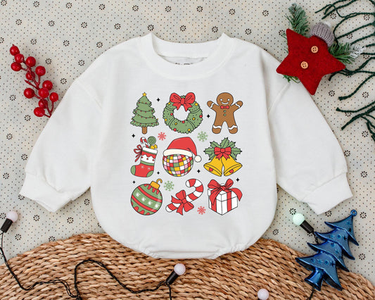Vintage Christmas Romper: Cute Toddler Sweatshirt & Baby Outfit
