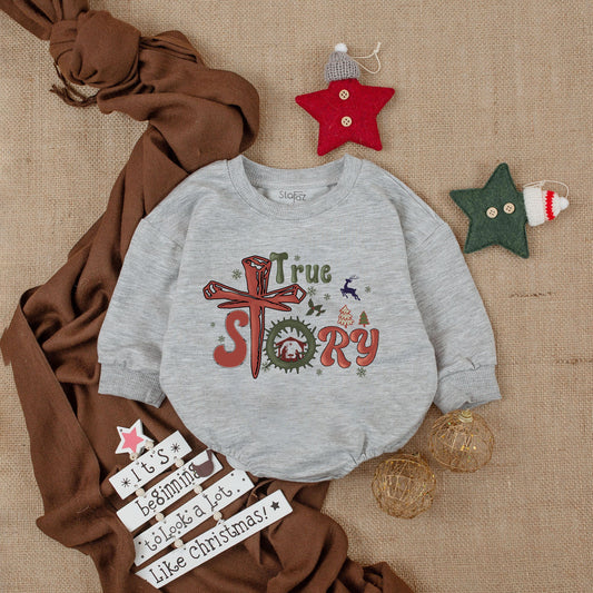 Baby's First Christmas True Story Bodysuit Green Red Nativity Wreath Whimsical Design Long Sleeve Newborn Romper Outfit Holiday Gift