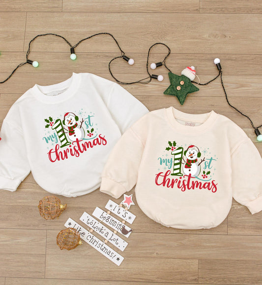 Baby’s 1st Christmas Romper | Cute Snowman Bubble Outfit Gift