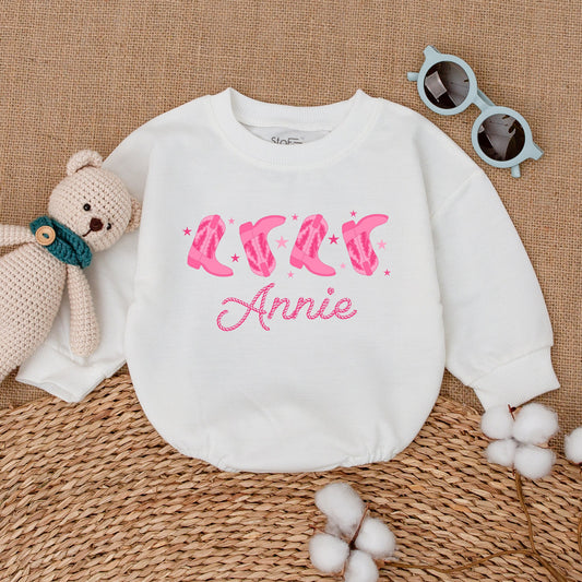 Cowgirl Boots Romper: Western Baby Girl Rodeo Outfit, Newborn Bubble Bodysuit, Country Baby Announcement, Unique Western Baby Gift, Soft Cotton (138 chars)