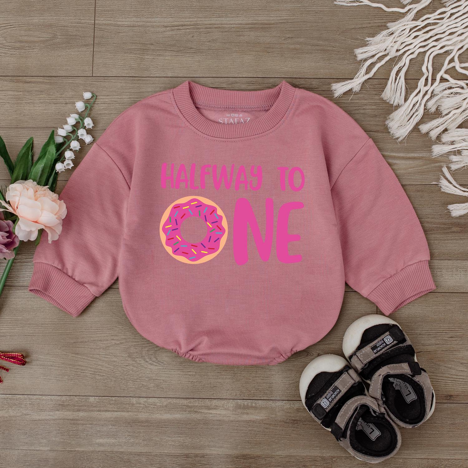 Adorable "Half Way To One" Donut Birthday Romper Cute Baby Girl Boy Outfit Gift Soft Cotton Bodysuit Celebration Apparel