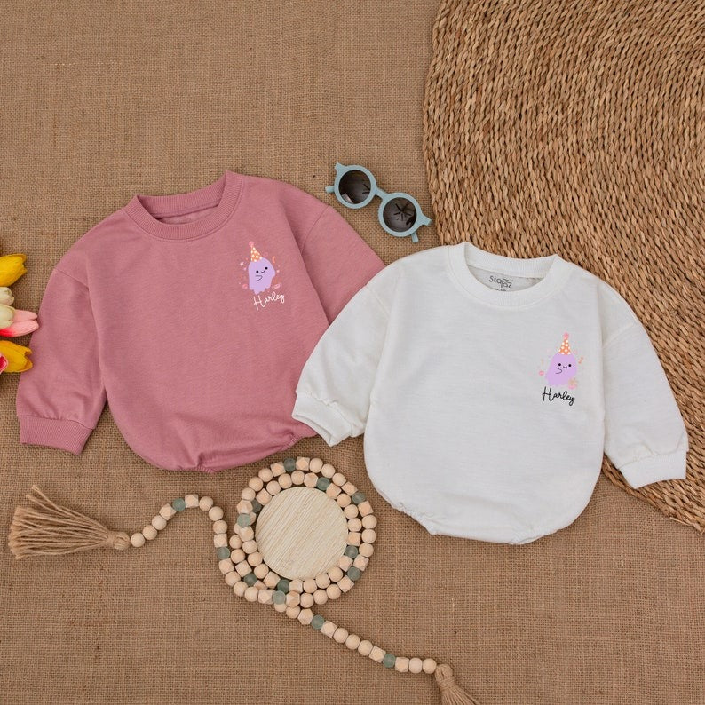 Embrace Halloween with our Spooky One Baby Bubble Romper! Perfect for fall parties and baby showers, it blends style and warmth. Add to your baby's Halloween wardrobe with this cute and spooky outfit. Make it special, personalize it. Not just an outfit, it's an adventure your baby girl will love.