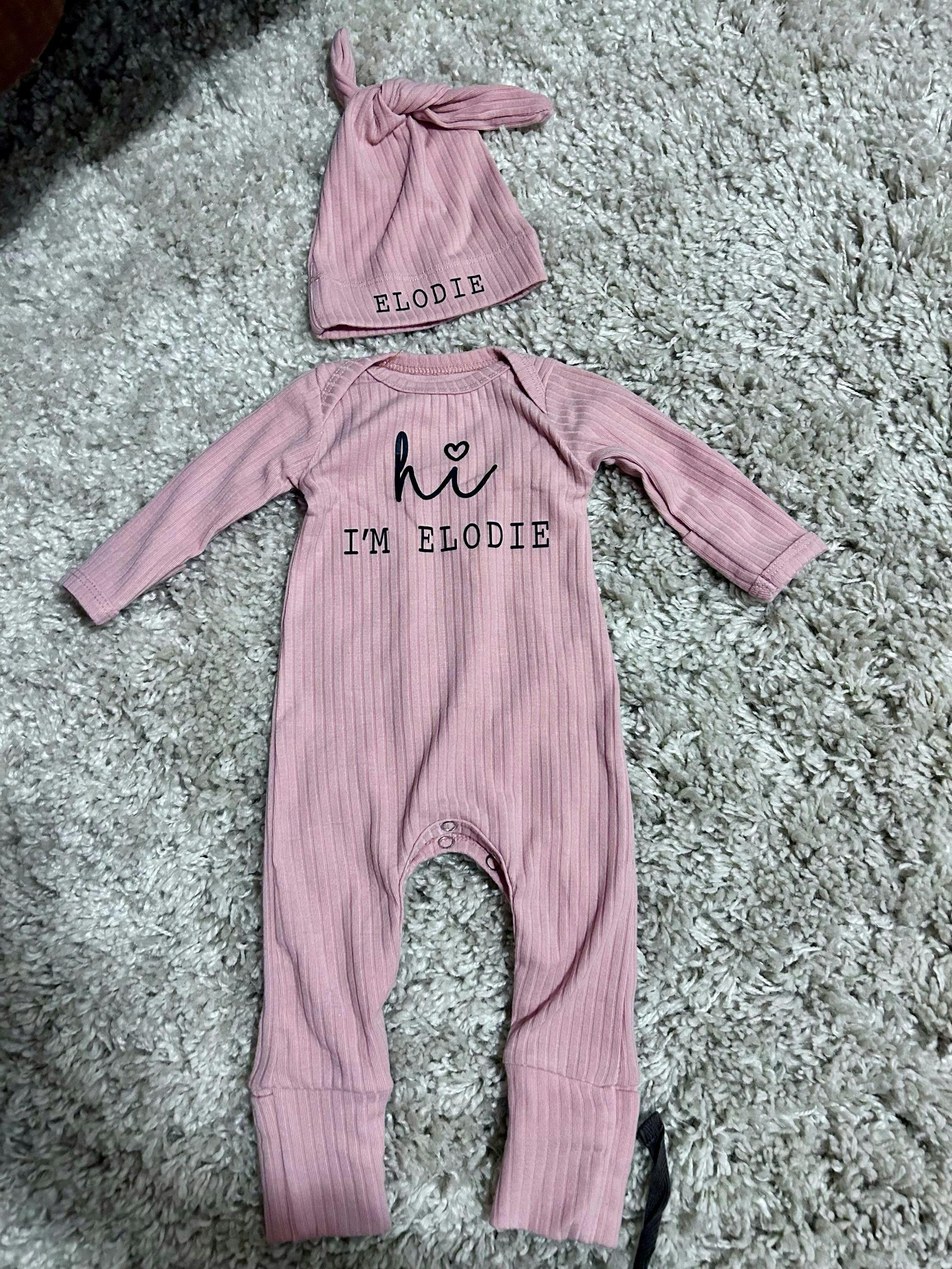 Imagine the heartwarming moment you bring your precious little one home, wrapped in an outfit as special as she is. This charming vintage-inspired 'Hello World' bodysuit and hat set is designed to capture that sweet first introduction. Crafted from soft, gentle fabric, it's perfectly comfortable for your newborn's delicate skin, making it ideal for those first memorable photos and hospital announcements. The adorable coordinating hat completes this timeless look, adding an extra touch of cuteness. This beautiful set also makes a deeply thoughtful and unique personalized baby shower gift, creating a treasured keepsake that families will cherish forever.
