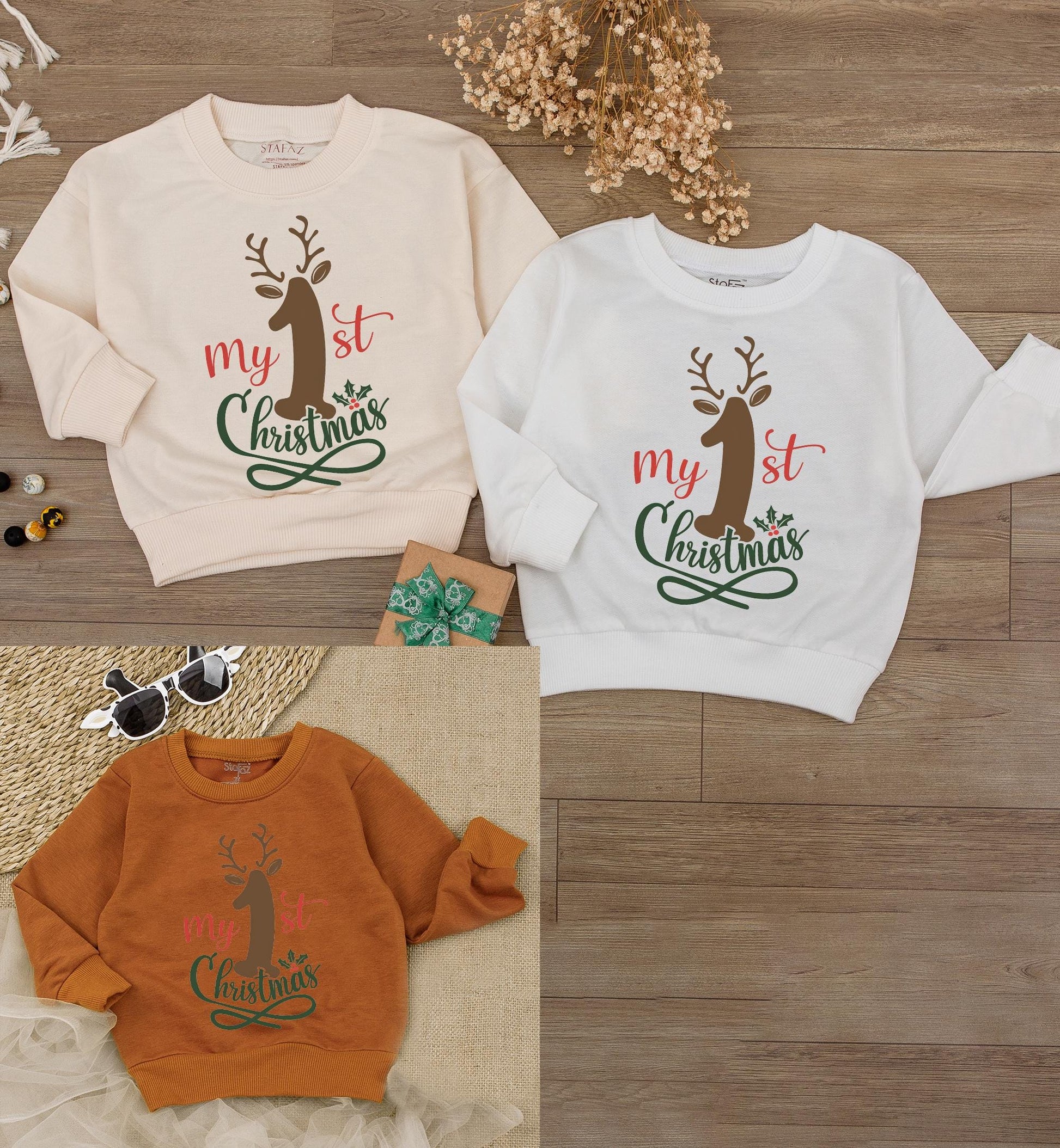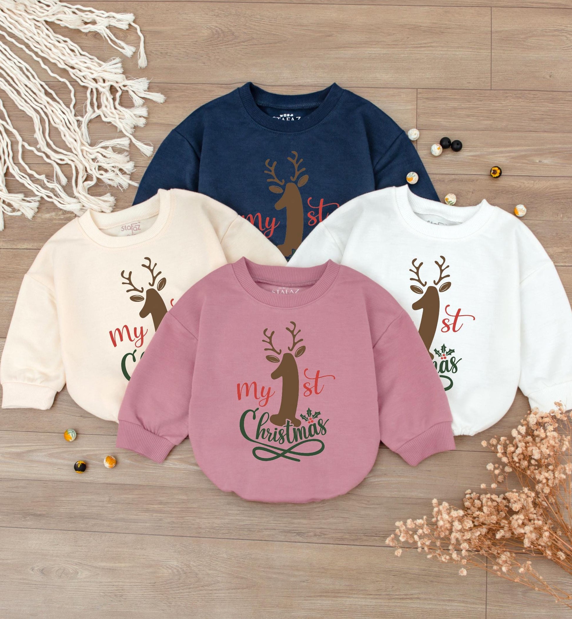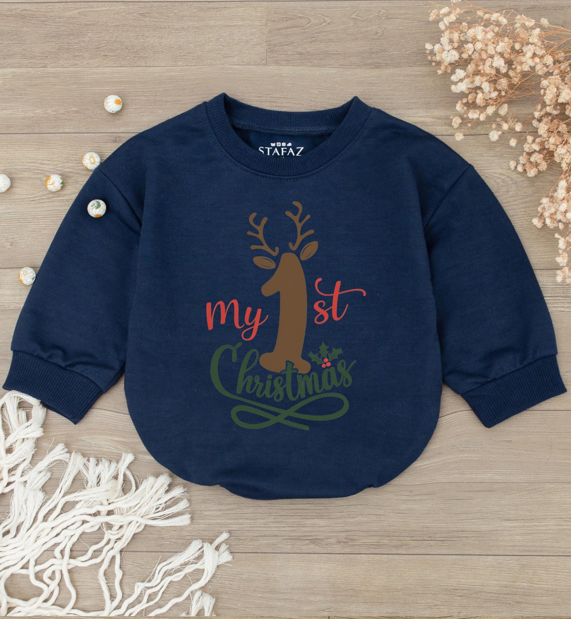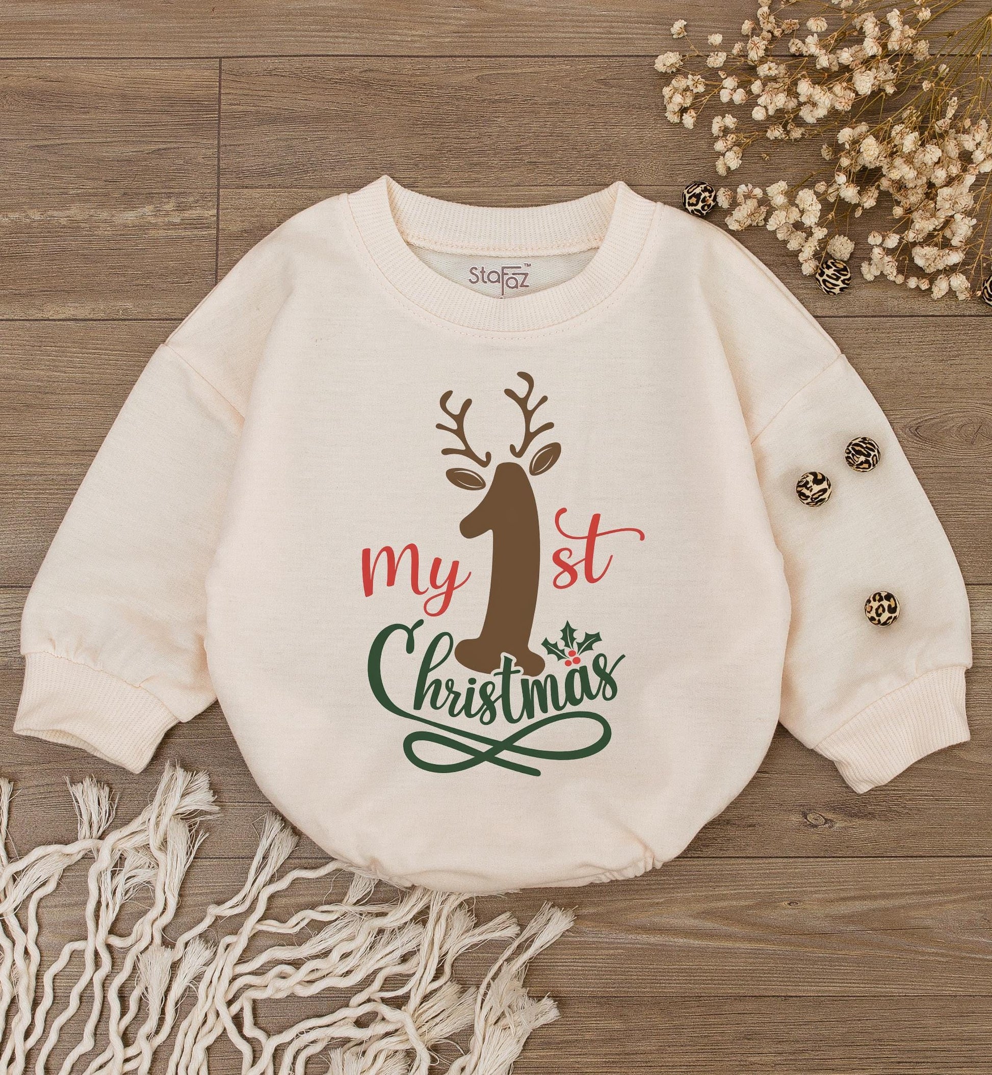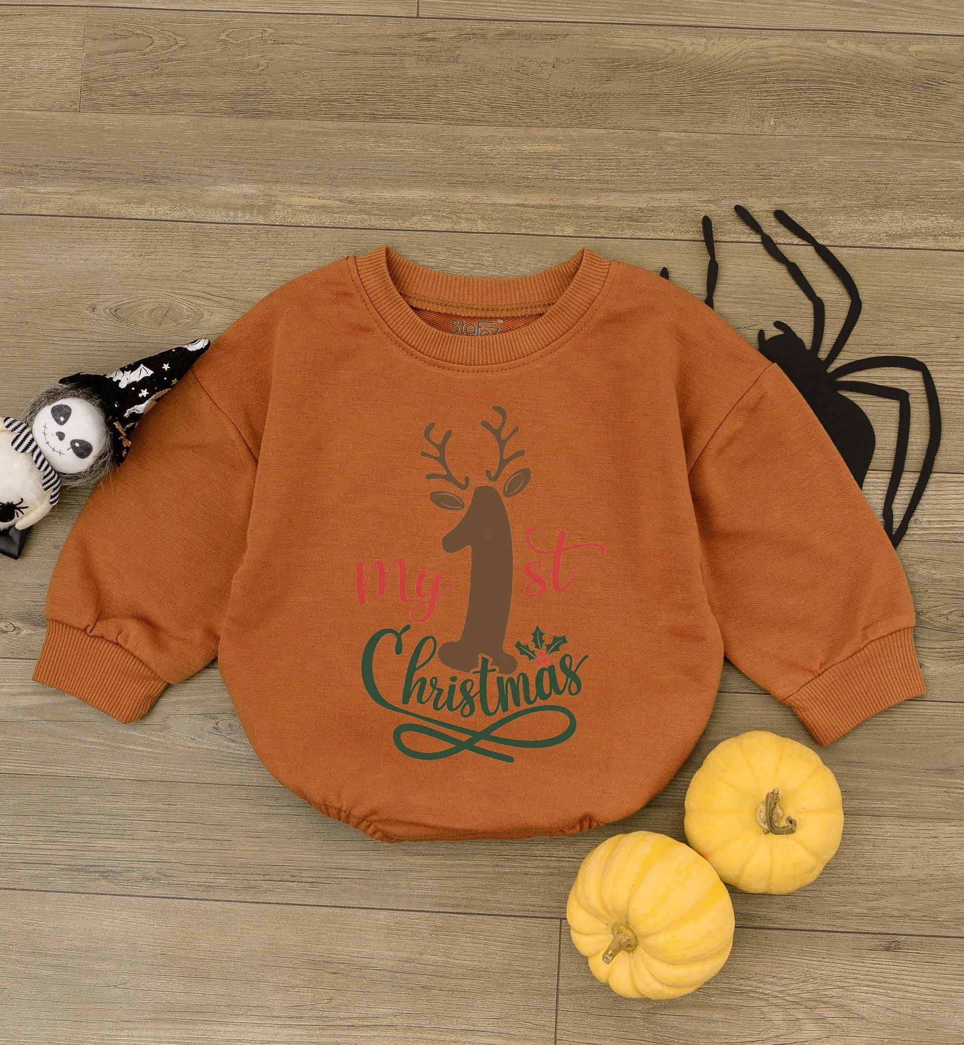 Baby's 1st Christmas Outfit: Reindeer Romper & Bodysuit Set