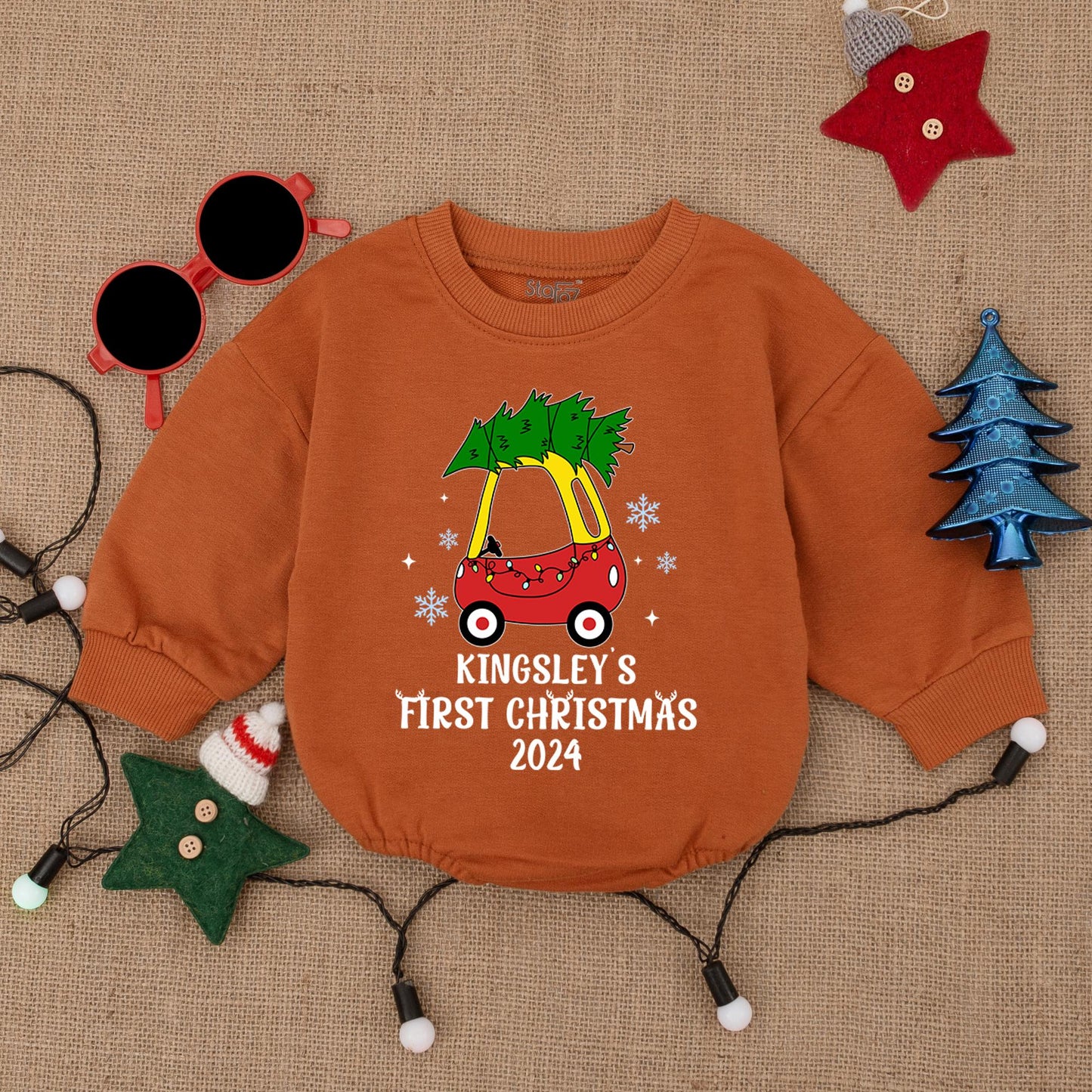 Celebrate your baby’s first Christmas with this adorable bubble romper featuring a festive red car and tree design. Perfect as a winter pullover or a baby shower gift, this cozy outfit promises comfort and cuteness. Ideal for creating memorable holiday moments and cherished keepsakes.