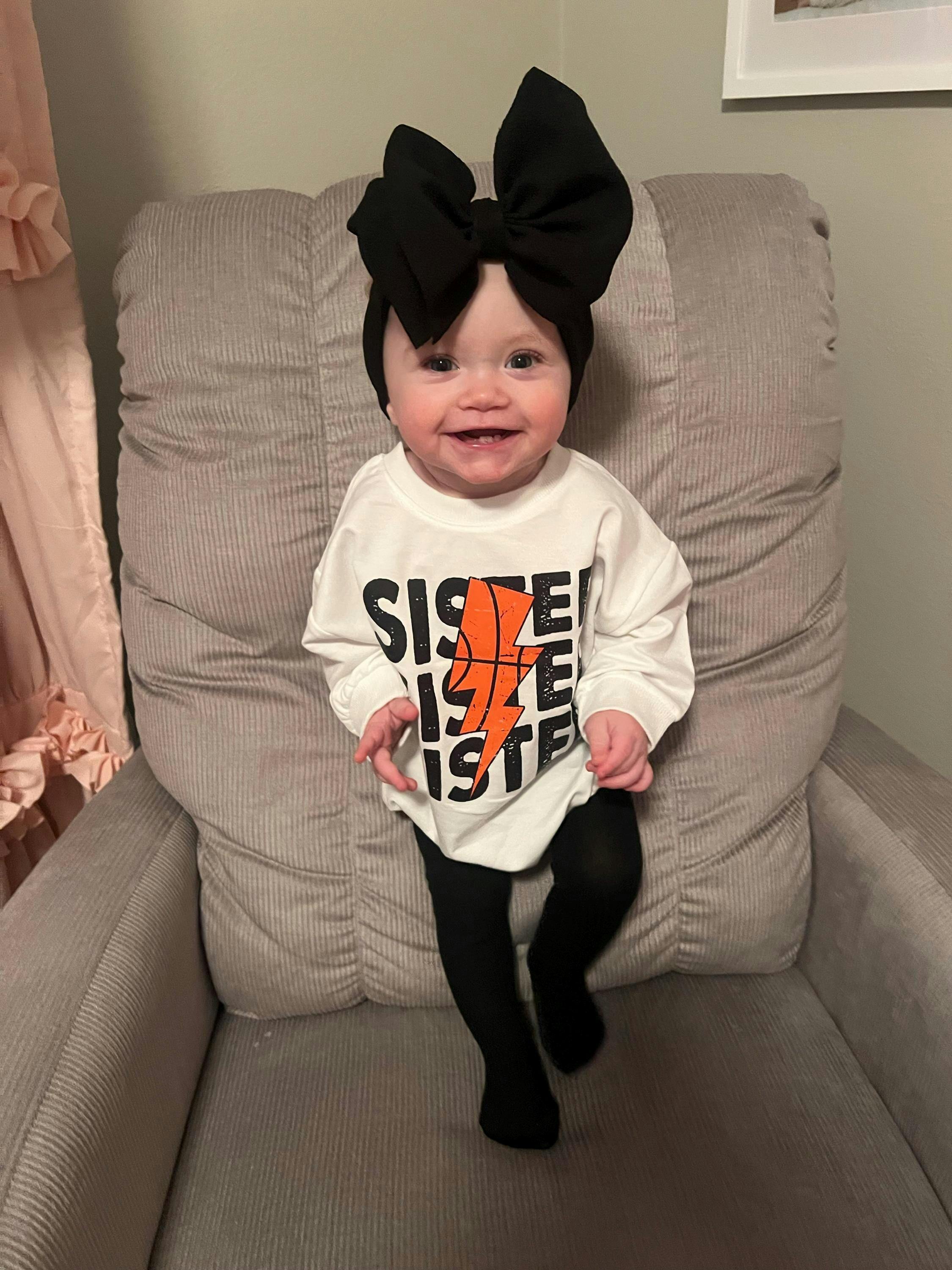 Celebrate your little one's love for the game with this adorable Custom Basketball Sister Romper! Perfect for game days or everyday wear, this soft baby bodysuit features a fun basketball theme that's sure to score big with your family. Imagine your little sister cheering from the sidelines or your brother showing off his team spirit in this sweet outfit. It's a fantastic baby shower gift for any basketball-loving family, creating precious memories that will last a lifetime. Dress your tiny fan in this charming piece and watch them shine on and off the court!