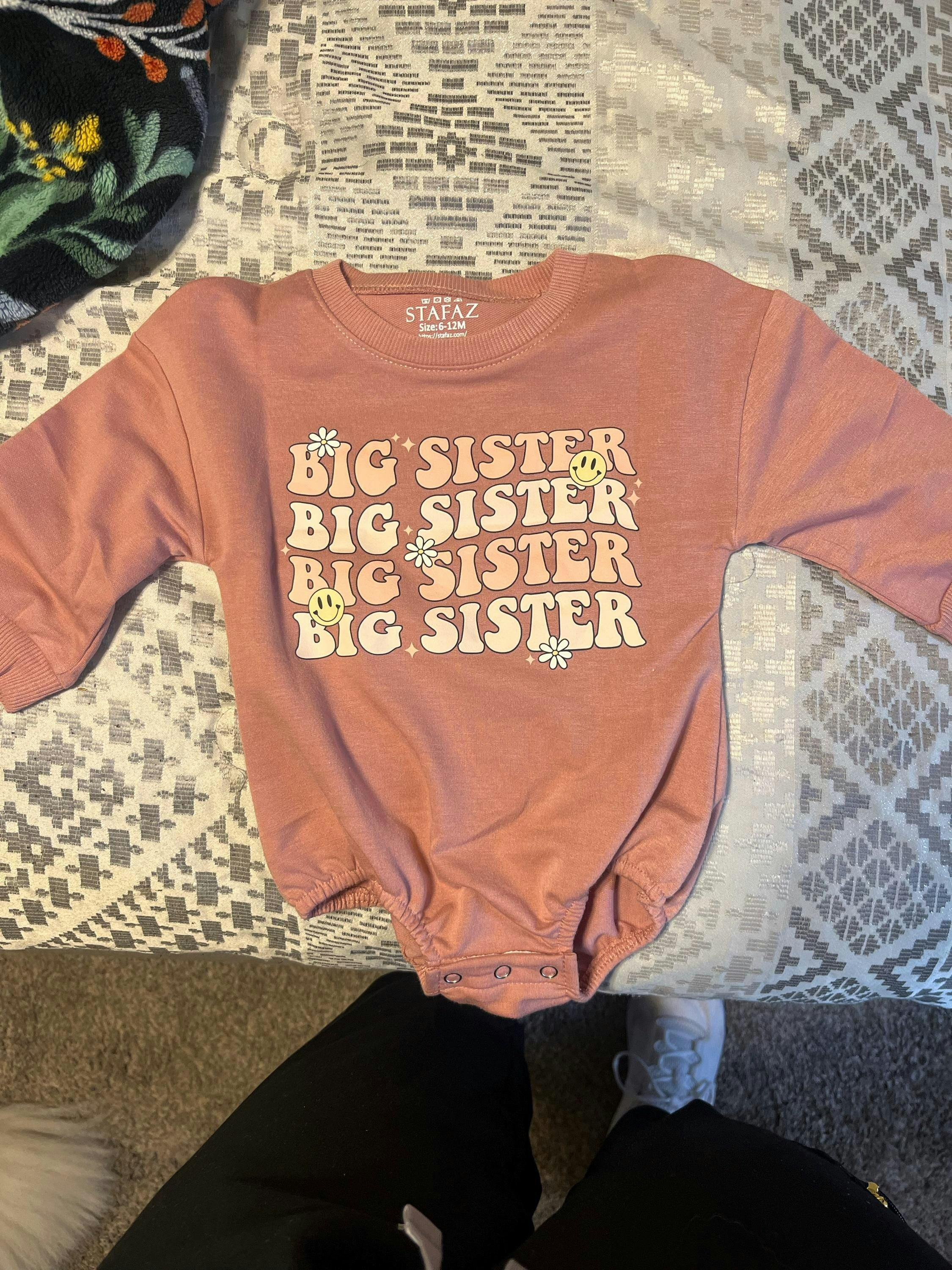 Big Sister Bubble Romper Pregnancy Reveal Baby Bodysuit Baby Girl Clothes Newborn Romper Sister Baby Shirt Gift for Big Sis