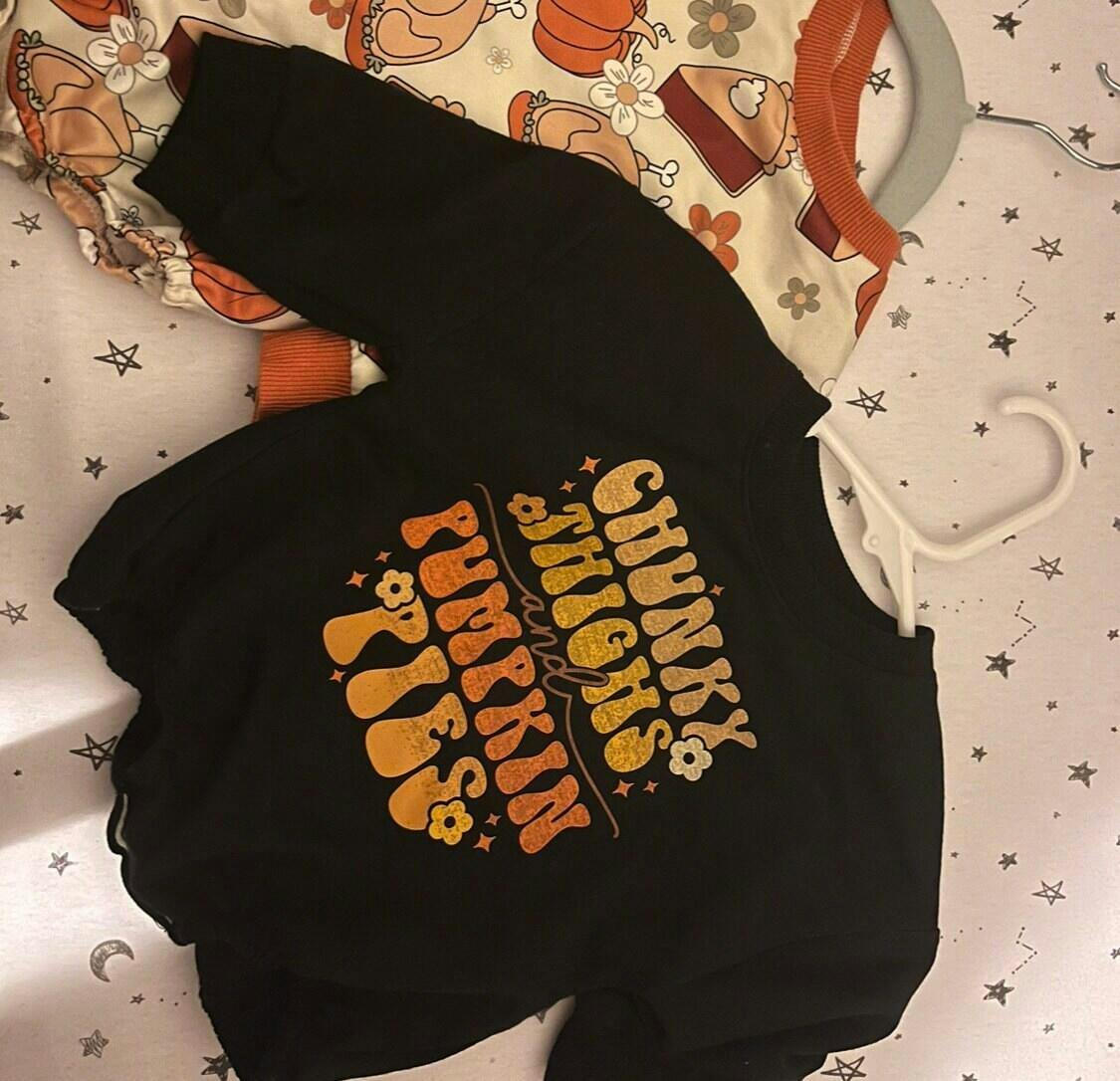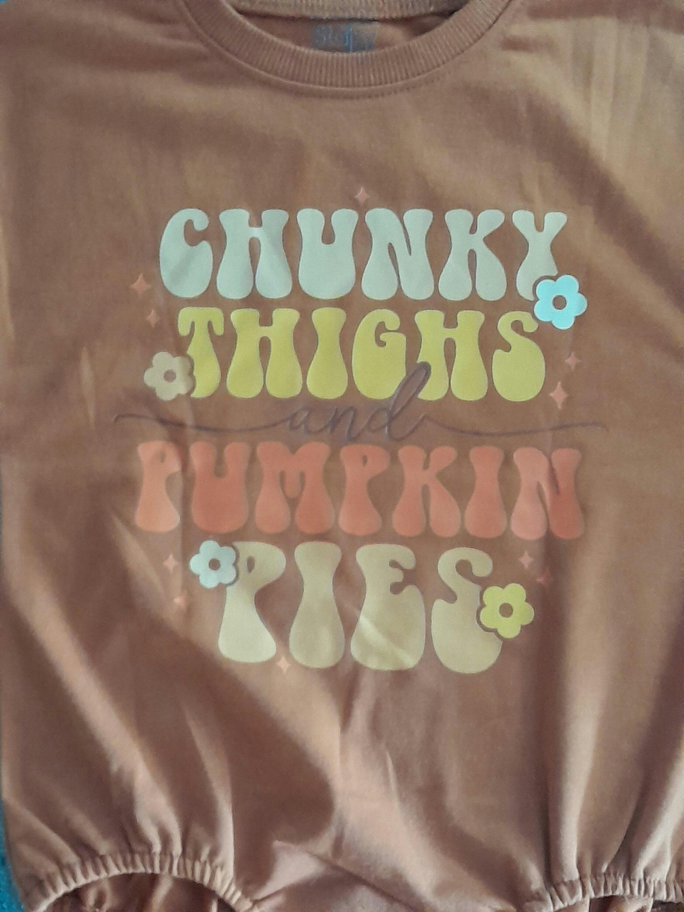 Chunky Thighs & Pumpkin Pies Baby Romper Cute Fall Vibes Bodysuit New Baby Gift Thanksgiving Outfit Adorable Infant Clothing