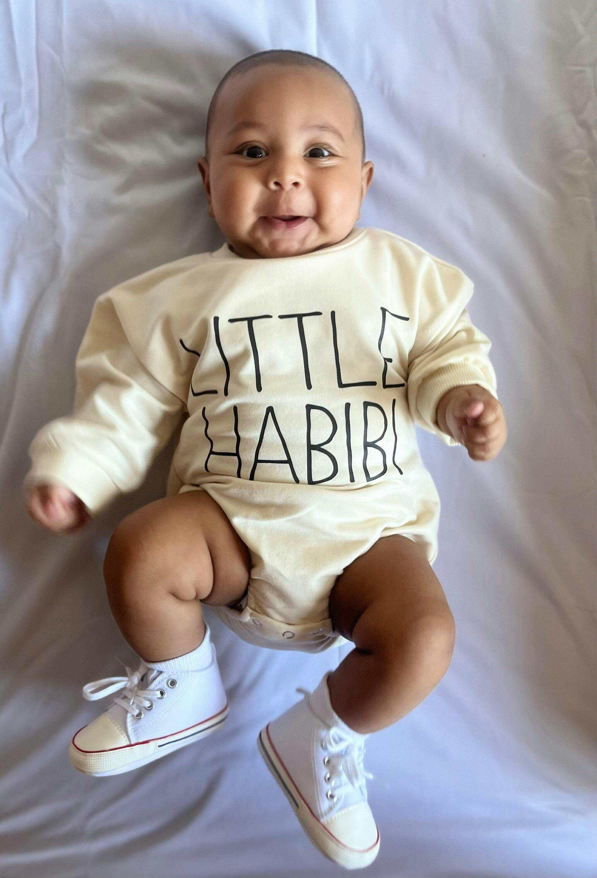 Celebrate your precious little one with our adorable Little Habibi Baby Romper, a sweet embrace for your darling. Crafted for ultimate softness and comfort, this charming outfit features the heartfelt Arabic term 'Habibi,' meaning 'my darling,' making it truly special. It's the perfect way to welcome a newborn or present a thoughtful gift at a baby shower, celebrating new life and heritage. Imagine your baby looking utterly charming in this cozy outfit, ideal for everyday adventures or those memorable first photos. This romper isn't just clothing; it's a warm hug and a beautiful expression of love, perfect for a Muslim baby gift or a coming home outfit. Give the gift of comfort and cultural pride to the newest member of your family, creating cherished memories that last a lifetime.