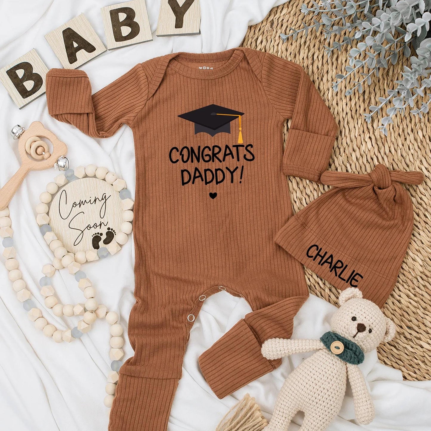 Congrats Daddy Baby Bodysuit Graduation Gift for New Dad from Baby Black Cap Yellow Tassel Newborn Romper First Father's Day Outfit