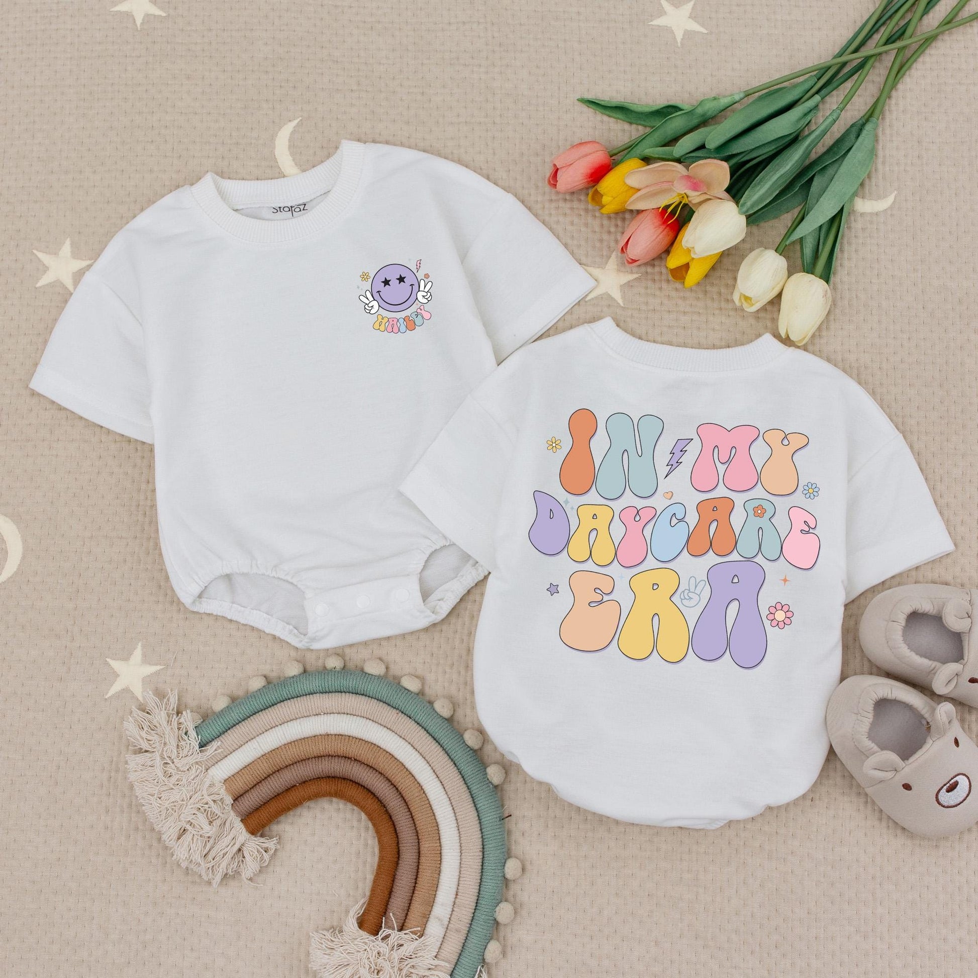 Celebrate your little one's exciting new chapter with this adorable "Daycare Era" romper! Featuring a sweet floral design, this outfit is perfect for capturing those precious first-day memories. Imagine her stepping into daycare with a big smile, feeling comfortable and stylish in this specially designed tee. It’s more than just an outfit; it’s a cherished keepsake for her school journey, making that first day feel extra special. This floral school shirt is also a thoughtful back-to-school gift for any toddler girl, promising smiles and confidence. Dress her in something that celebrates her growth and new adventures!