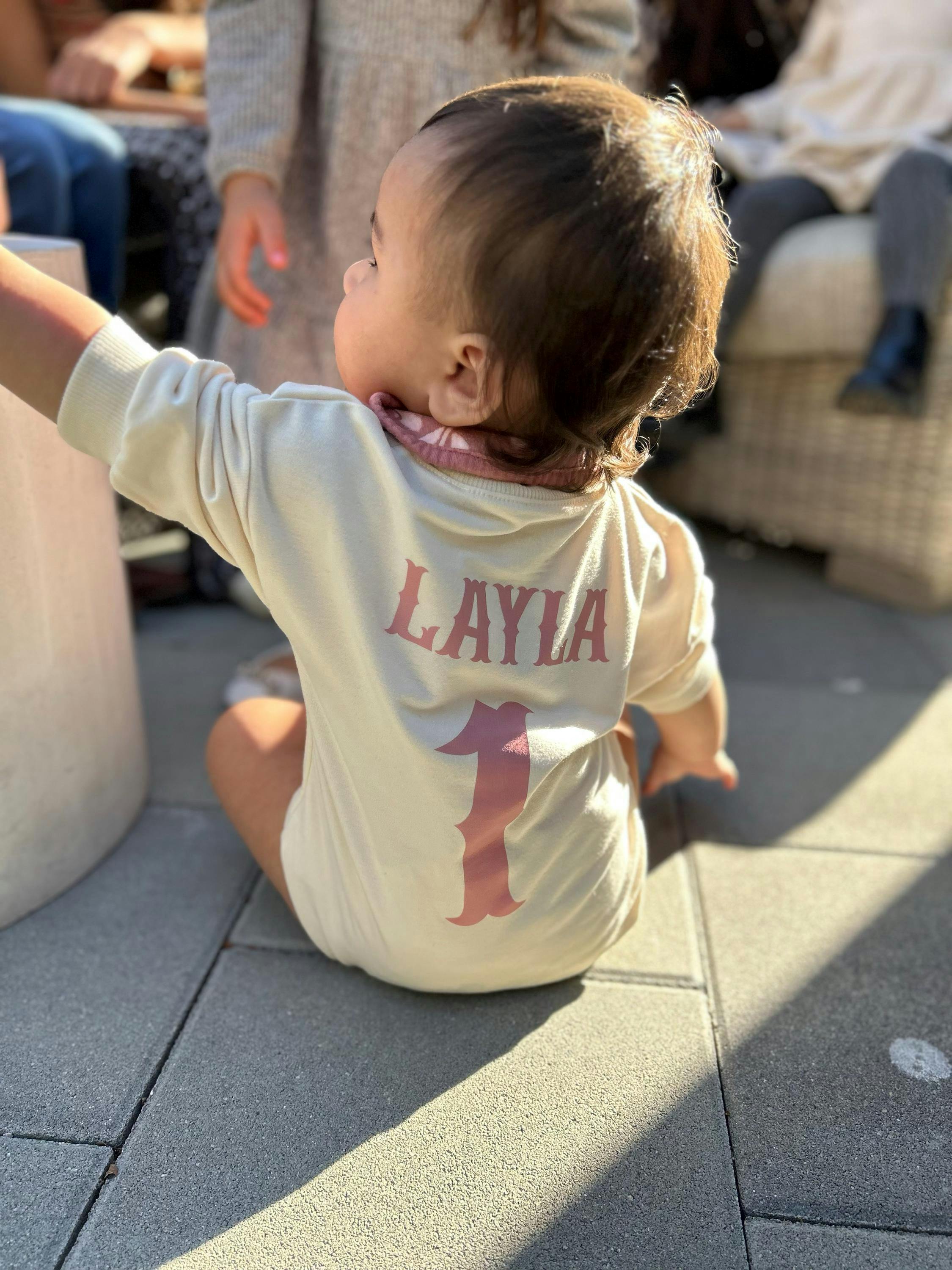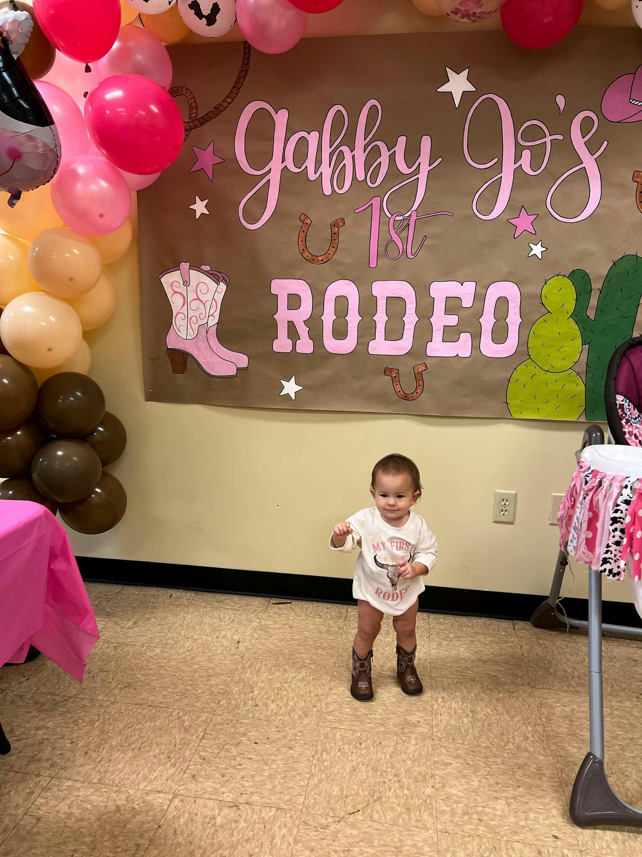 Celebrate that incredible first milestone with a touch of Western charm! This adorable romper is designed to capture the spirit of a little cowgirl's 'My First Rodeo.' Featuring a sweet pink "MY FIRST RODEO" text and a faded bull skull with golden stars, it’s the perfect outfit for a Western-themed birthday bash. Imagine your precious baby girl looking absolutely darling in this bubble romper, ready for her special day, a fun photoshoot, or even a casual country-inspired gathering. It’s more than just an outfit; it’s a keepsake that marks a cherished memory, making it an unforgettable first birthday gift that captures pure joy and family pride.