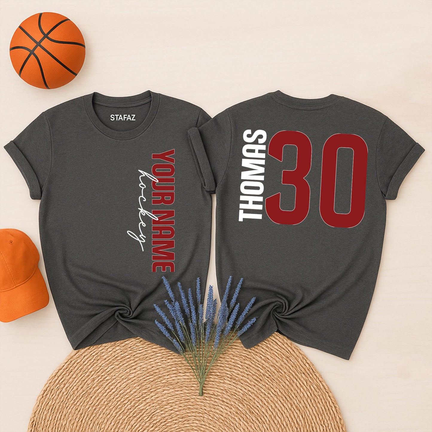 Capture the thrill of game day with this custom hockey t-shirt, perfect for the dedicated hockey mom or dad. Imagine the pride as your favorite player’s name and number are proudly displayed, making every cheer even more special. This comfortable tee is designed for endless hours of cheering from the stands, creating cherished memories with every goal. It's the ideal way to showcase your family's passion for the sport, whether you're at the rink or watching from home. Make this season unforgettable by personalizing your ultimate hockey fan gear. It’s more than just a shirt; it’s a badge of honor for your unwavering support.