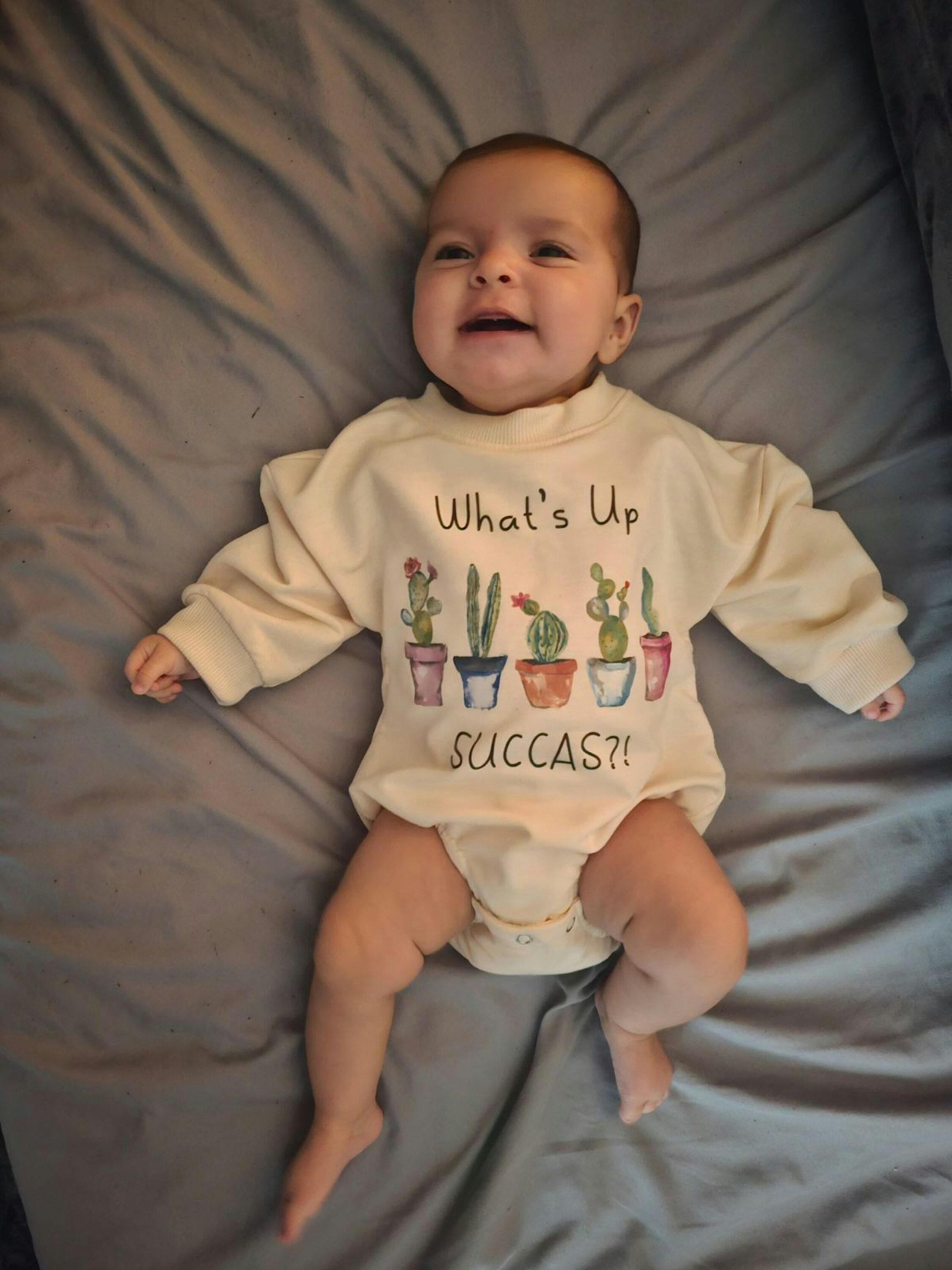 What's Up Succa Baby Romper Funny Cactus Bodysuit Gift Infant Clothes Unisex Baby Shower Present, Plant Baby