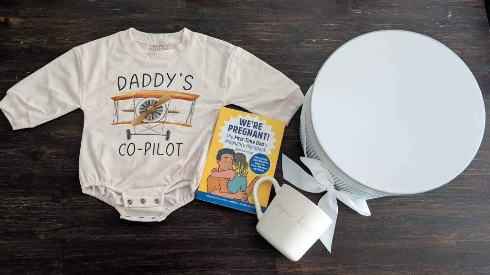 Imagine those precious moments of a proud dad with his little one, dreaming of adventures in the sky! This adorable "Daddy's Little Copilot" baby bodysuit captures that special bond perfectly. Featuring a sweet airplane design, it’s ideal for your growing little aviator, ready for cuddles or their first 'flights' around the house. Crafted for comfort, this cozy romper is perfect for everyday wear, unforgettable photos, or a unique pregnancy reveal. It's not just baby clothes; it's a celebration of a dad's love and his son's future adventures. Give the gift of heartwarming memories and a touch of aviation charm at the next baby shower. Let your little one soar with pride in this charming airplane outfit, celebrating their bond with Daddy.