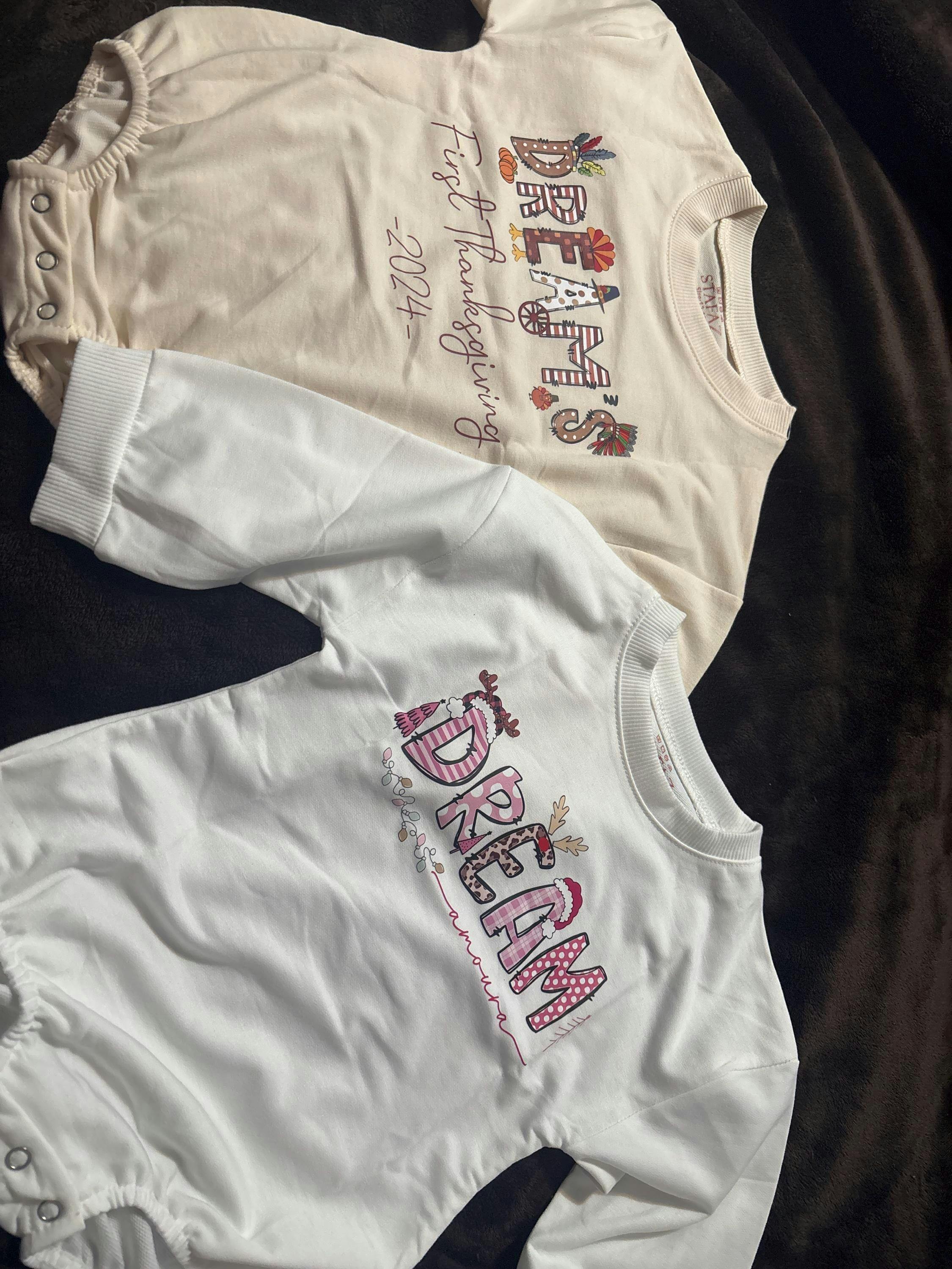 These sweatshirt onesies are so stinking precious!! The names/designs are exactly what I wanted, and the material is so incredibly soft!! I’m more than pleased with my purchase, and I’ll definitely recommend this shop to my other Mama friends!