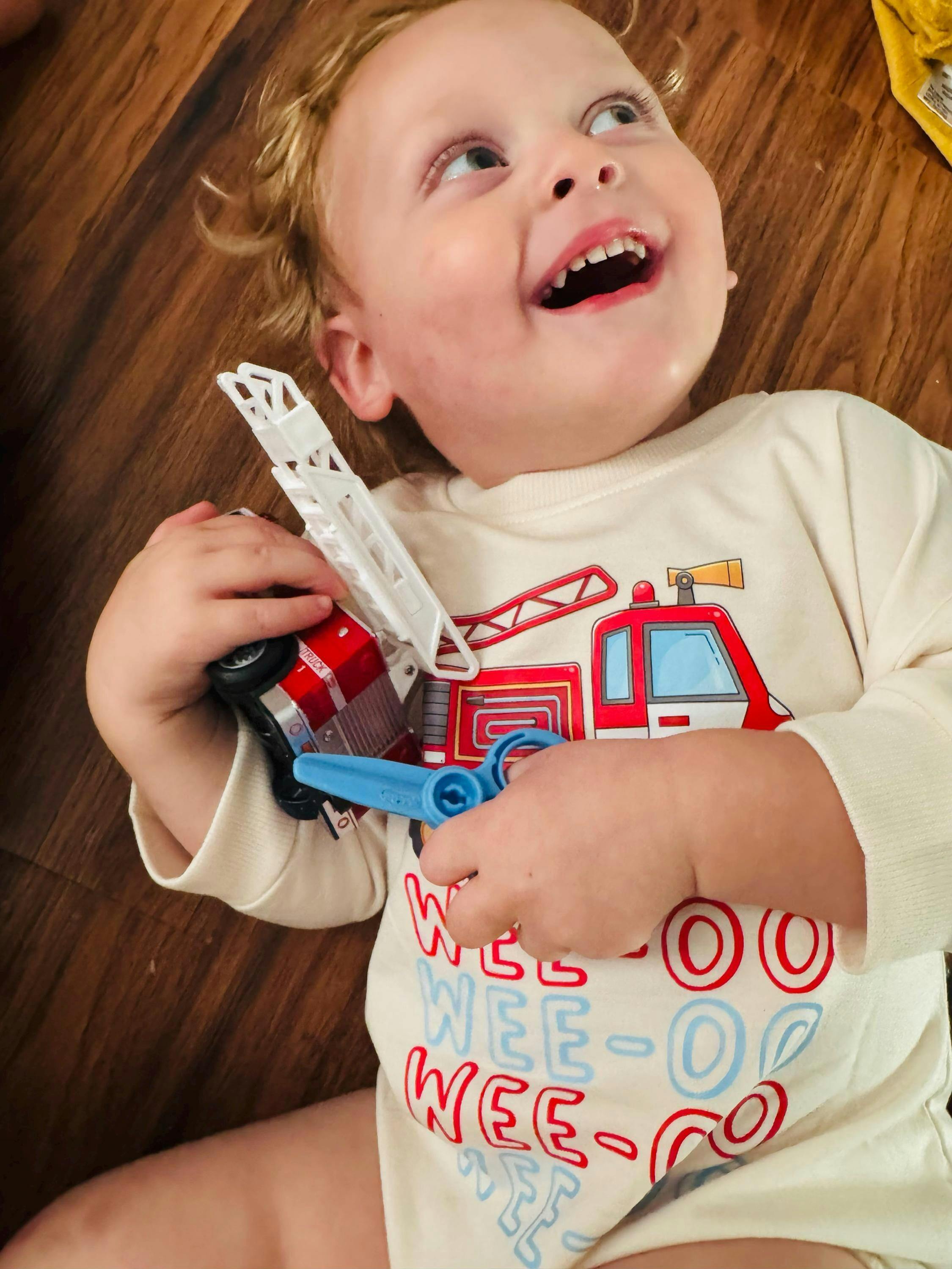 WEE-OO Firetruck Baby Romper Fun Cartoon Illustration Outfit for Boys and Girls Baby Shower Gift Comfortably Soft Cotton