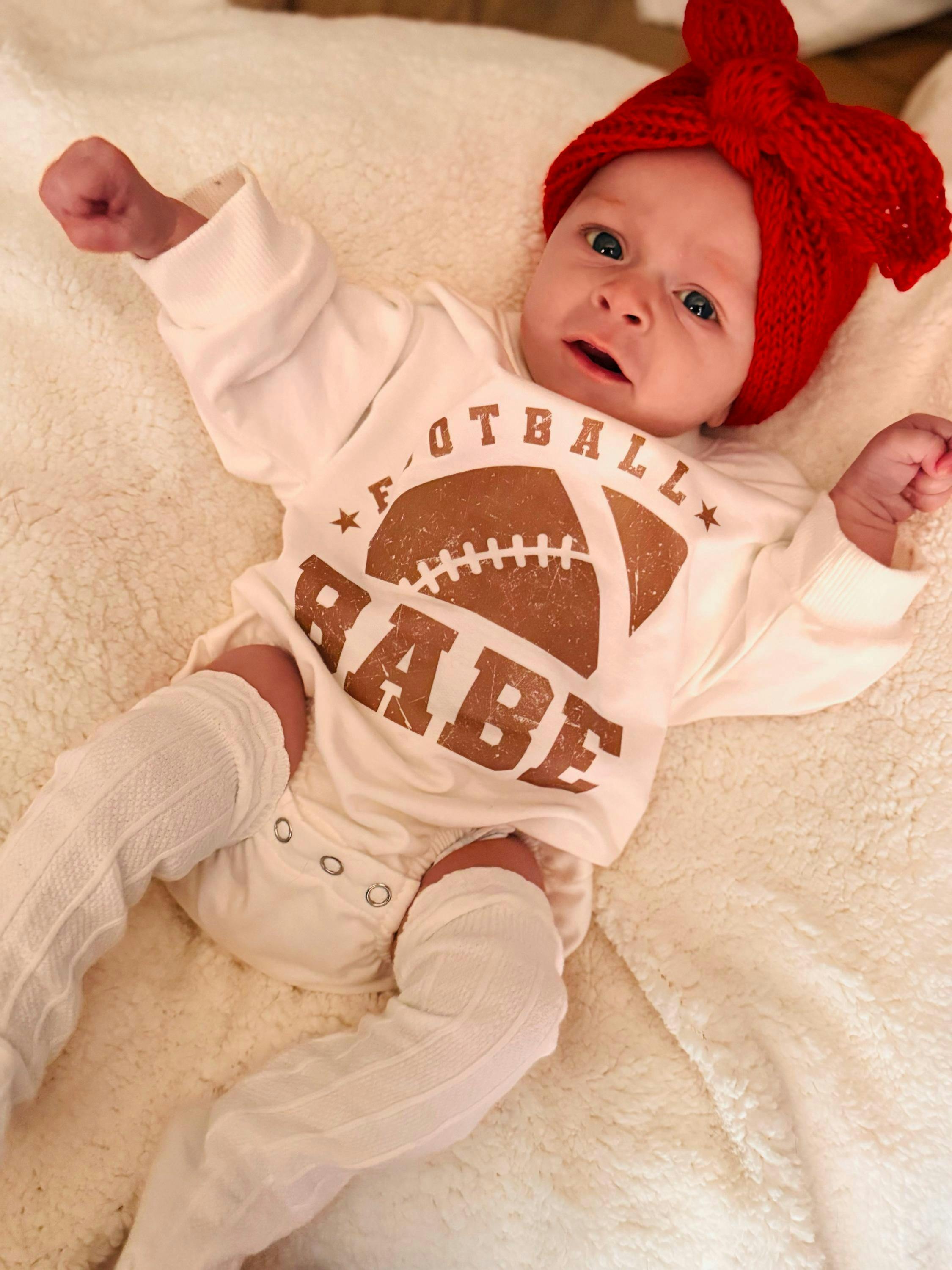 Oversized Football Baby Romper Jumpsuit for Daddy's Girl or Boy Toddler Sweater Long Sleeve Fall Newborn Outfit Football Babe Shower Gift