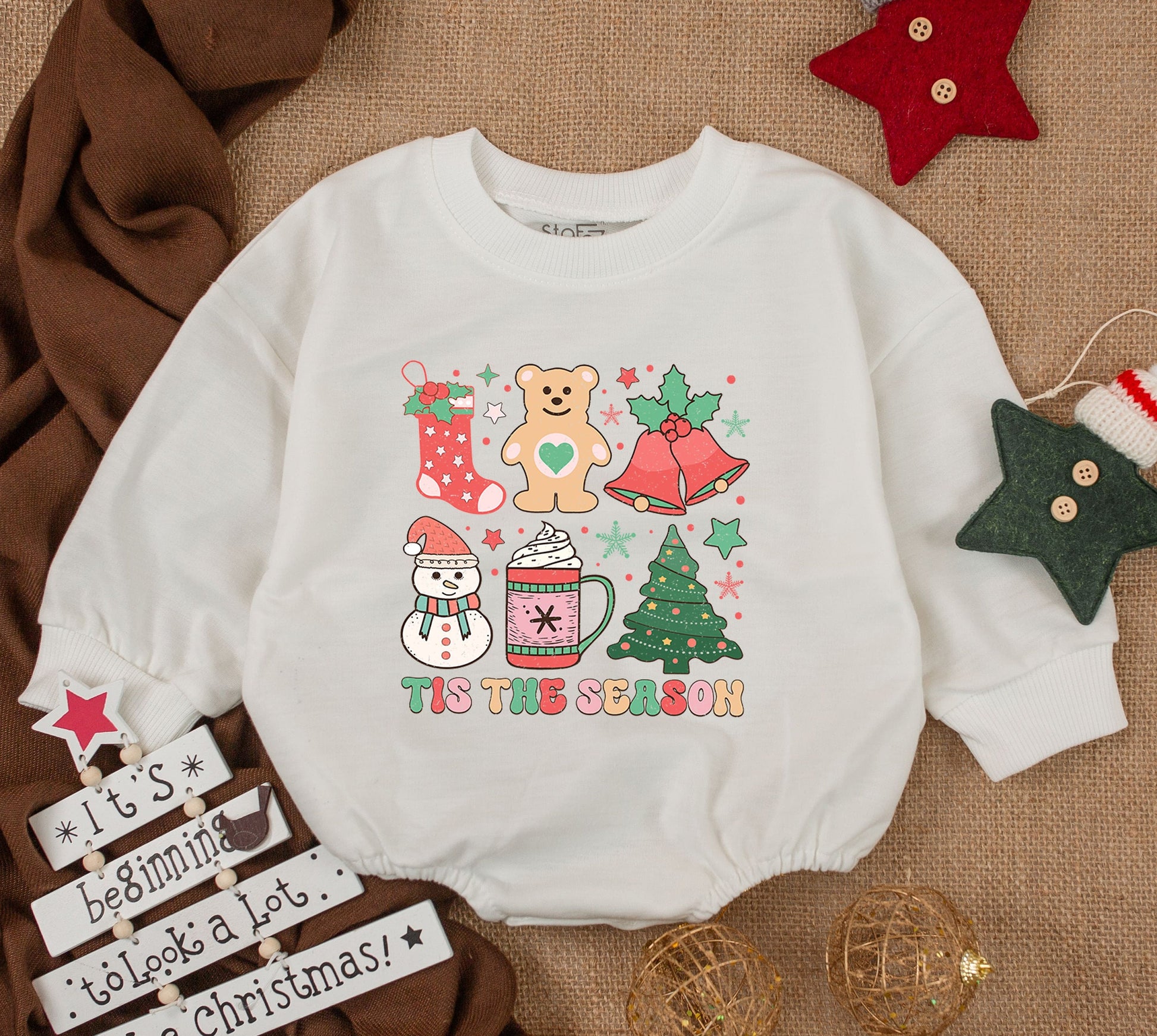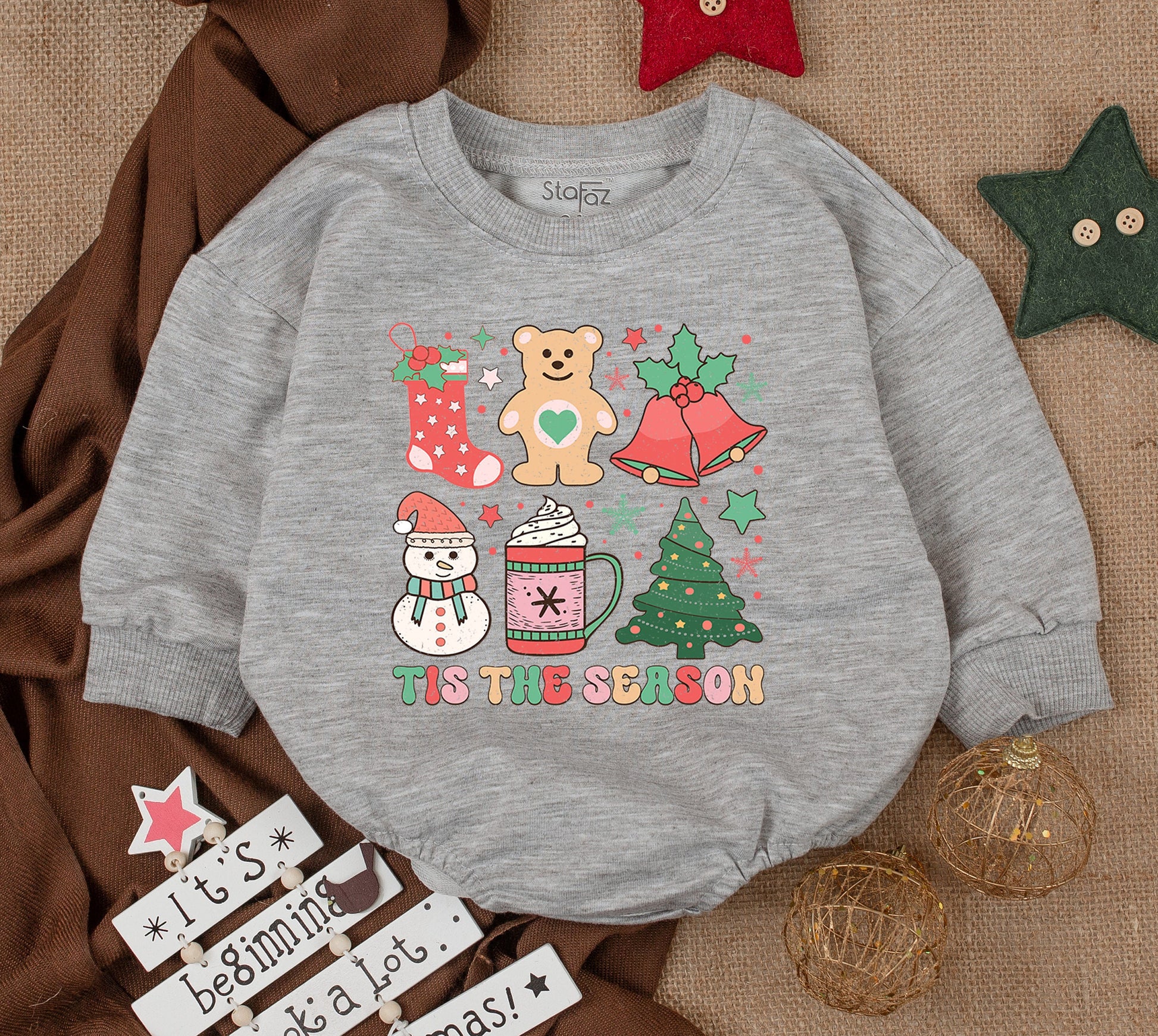 Celebrate your baby's 1st Christmas with our funny, retro-inspired bubble romper and toddler sweatshirt. Perfect for holiday photos, baby showers, or festive family gatherings. Spread merry vibes with these charming, comfy outfits. Tis the season for adorable holiday fashion!