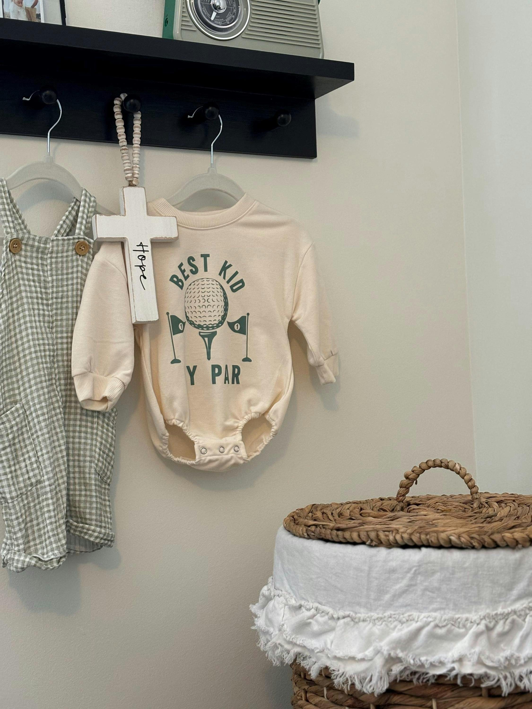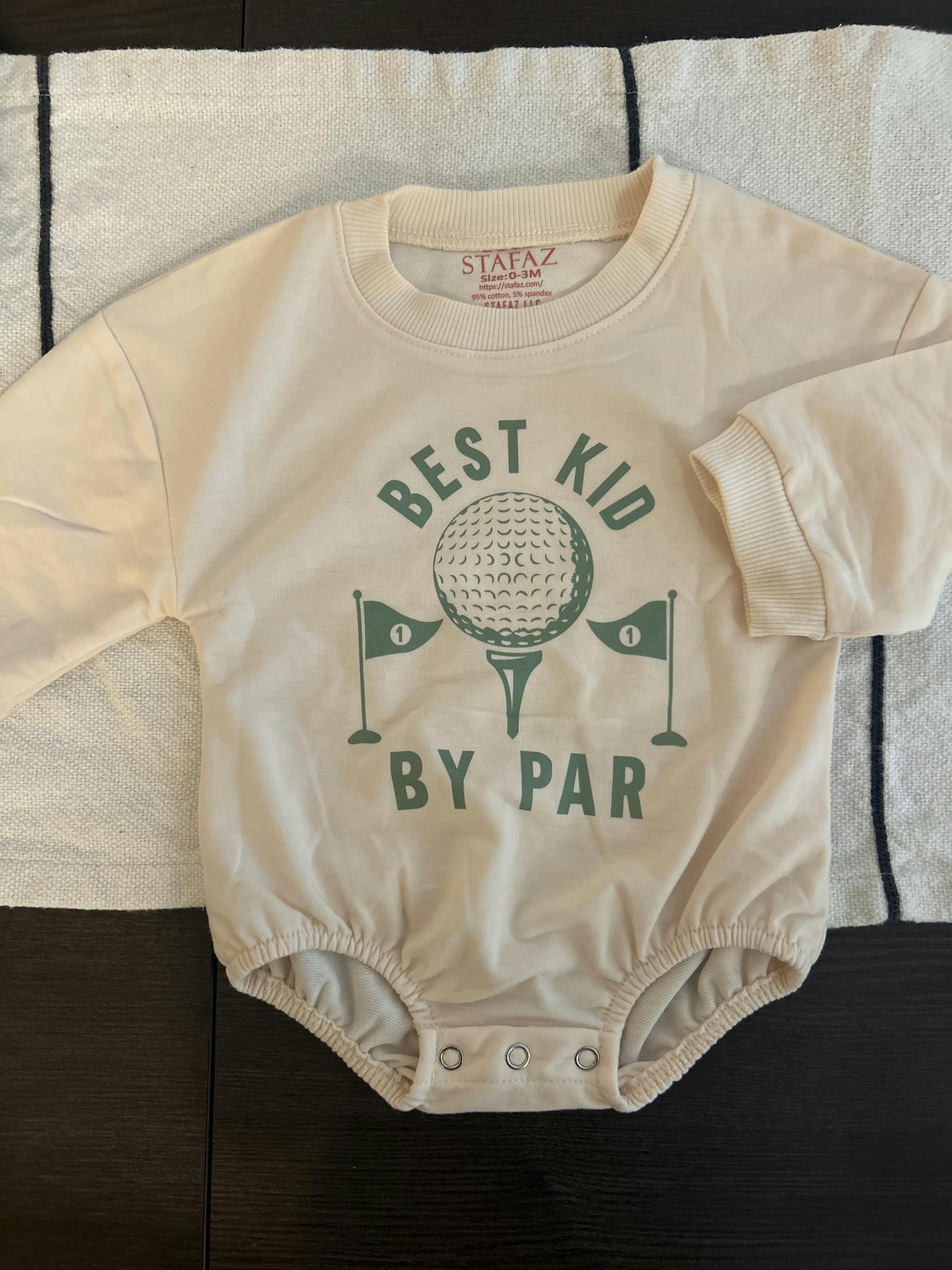 Imagine your little one, all smiles in this adorable golfing romper! This Best Kid By Par bodysuit is the perfect gift for Father's Day, celebrating the joy of golf and family. Crafted with love, it's designed to keep your baby comfy and looking cute whether they're on the green or just hanging out. This unique bubble romper makes a perfect baby shower gift or a charming 'coming home' outfit. It's a wonderful way to share your love for golf with your little one! Get ready to capture precious memories with this fun, golf-themed outfit.