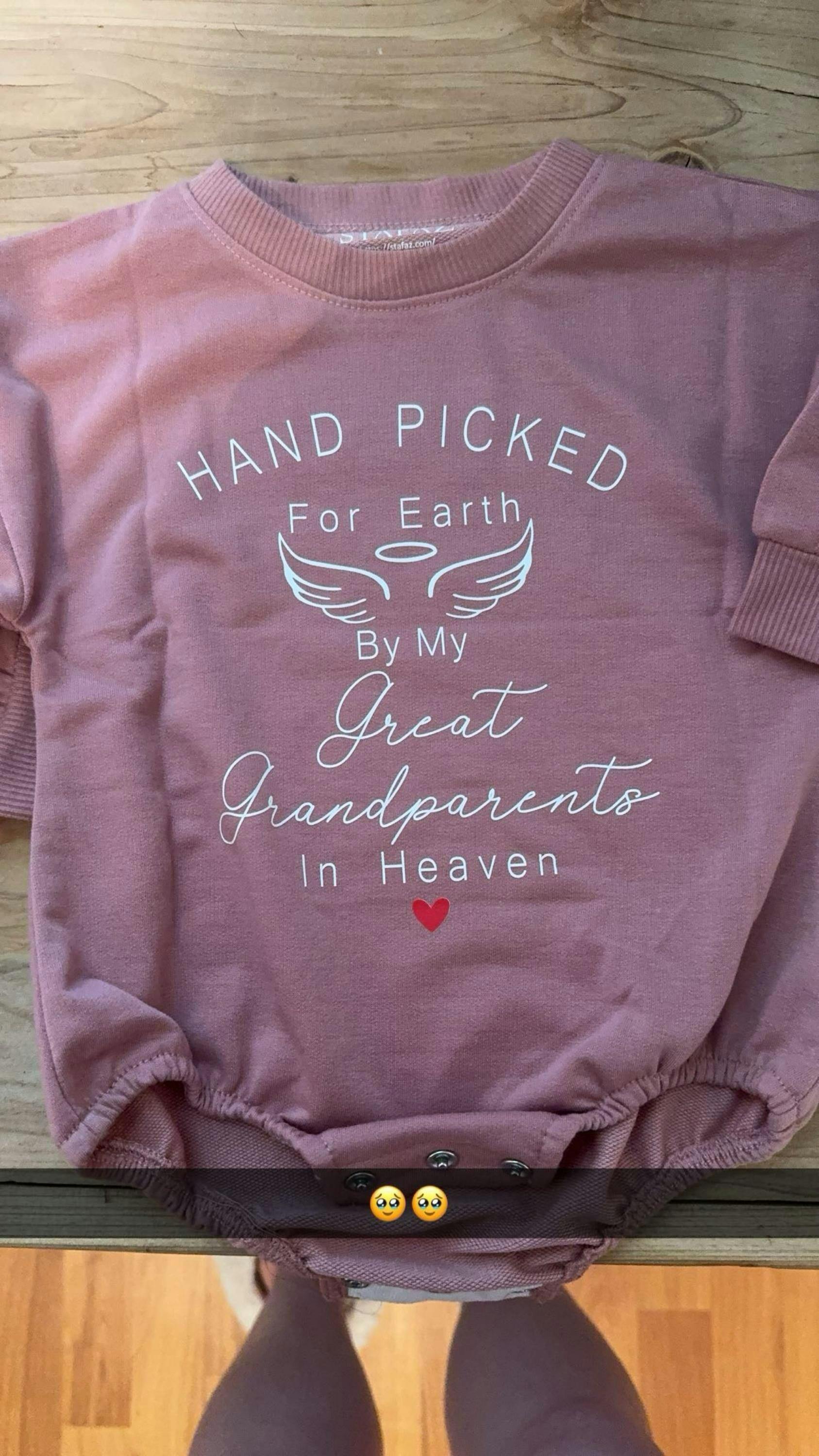Welcome your little one with a deeply meaningful piece that beautifully honors cherished memories. This tender baby romper features the heartfelt phrase 'Hand Picked For Earth By My Grandma In Heaven,' celebrating the enduring love and connection to those watching over us. Imagine your sweet infant wrapped in this soft, comfortable outfit, perfect for a coming home moment, a special announcement, or a touching photo shoot. It's a wonderful way to keep a beloved grandma's spirit close, making every cuddle feel extra special. This unique memorial baby outfit serves as a gentle reminder of love transcending, bringing warmth and comfort to new parents. It makes a truly thoughtful baby shower gift or a touching pregnancy reveal for families cherishing a heavenly guardian. Wrap your new arrival in a hug from above and create precious new memories.