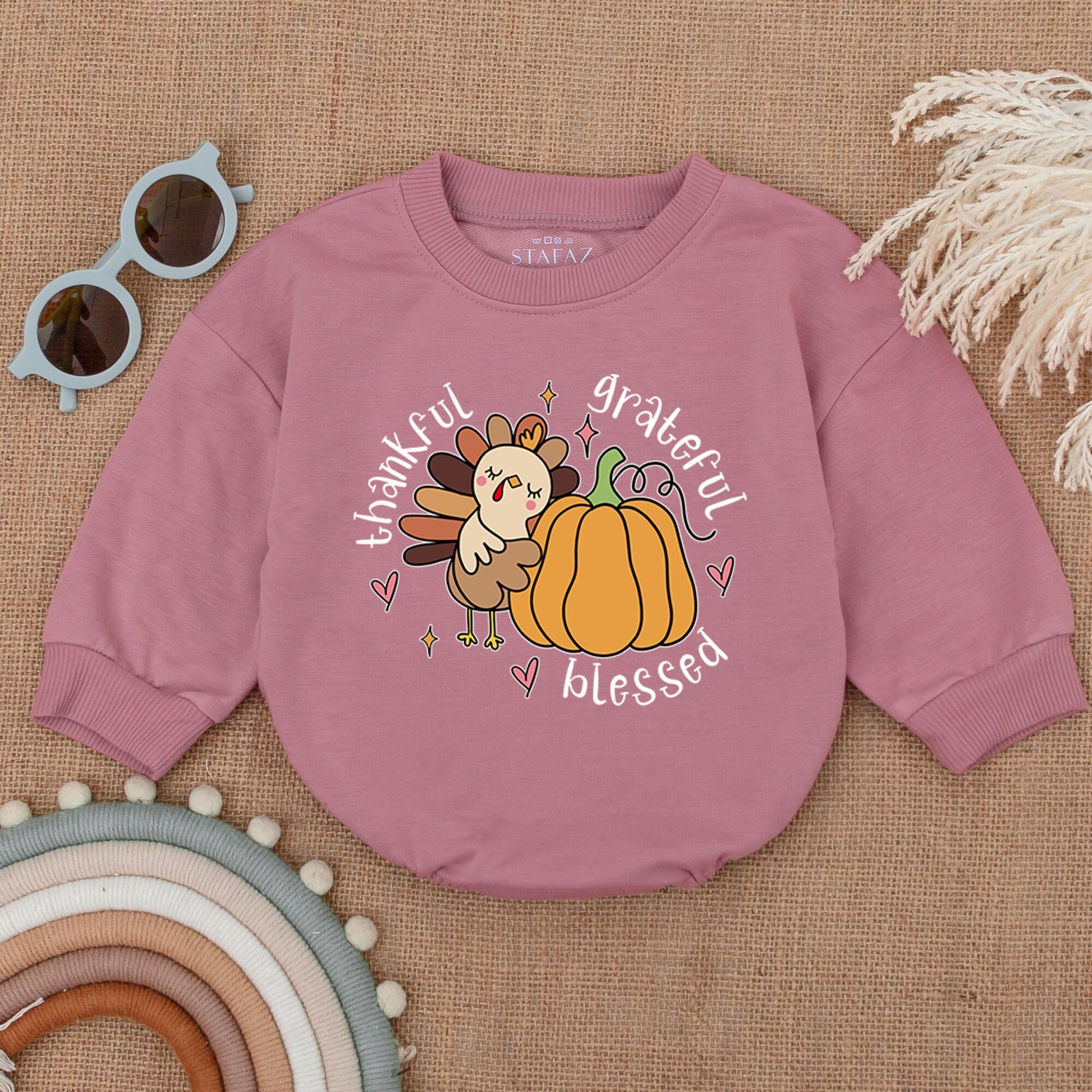 Grateful, Thankful, Blessed: Autumn Pumpkin Turkey Baby Romper