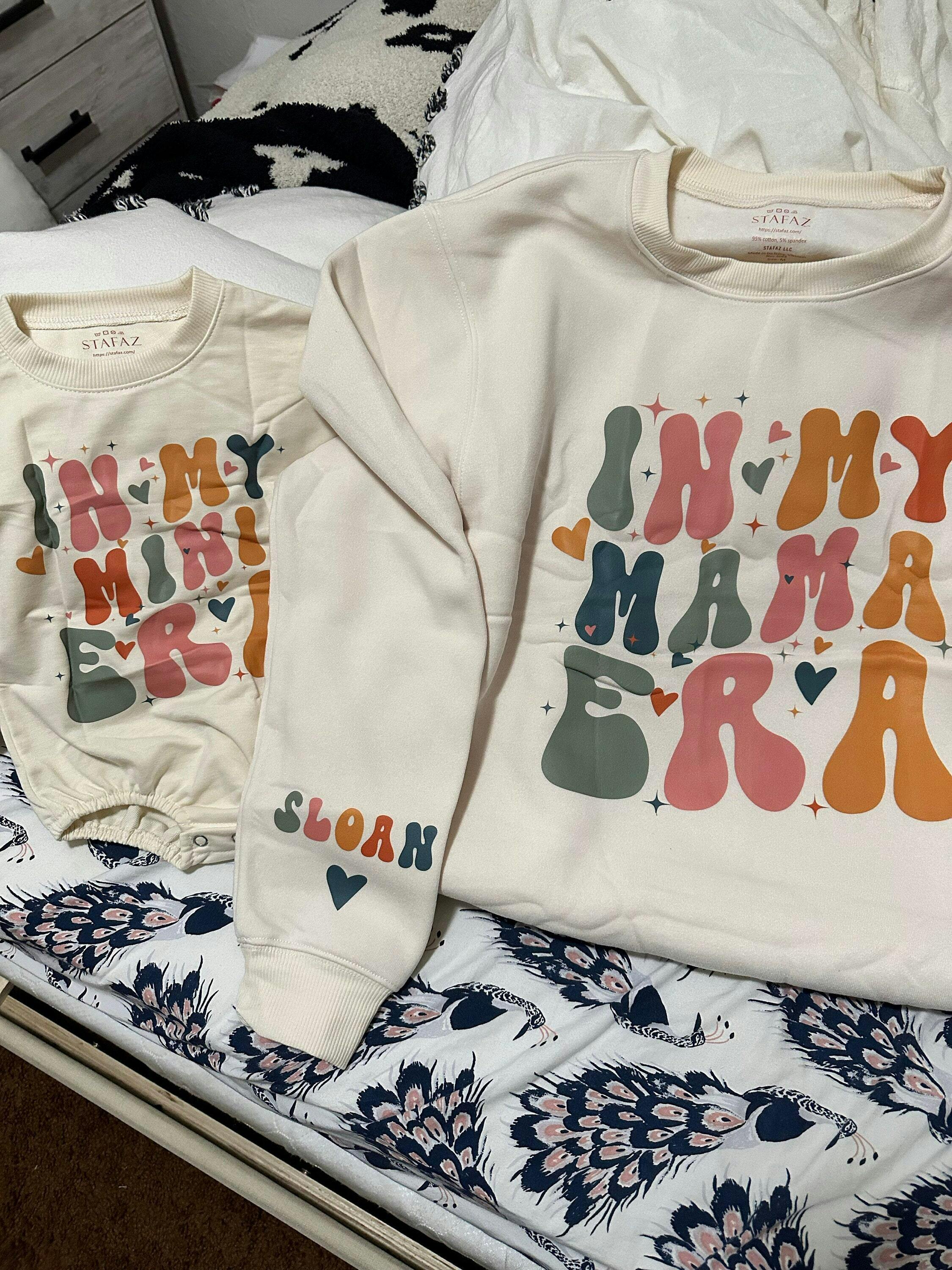 Personalized Mama & Mini Retro Sweatshirt Set, Groovy Family Matching Outfits, In My Era, Baby Romper, Mom & Me Winter Gift