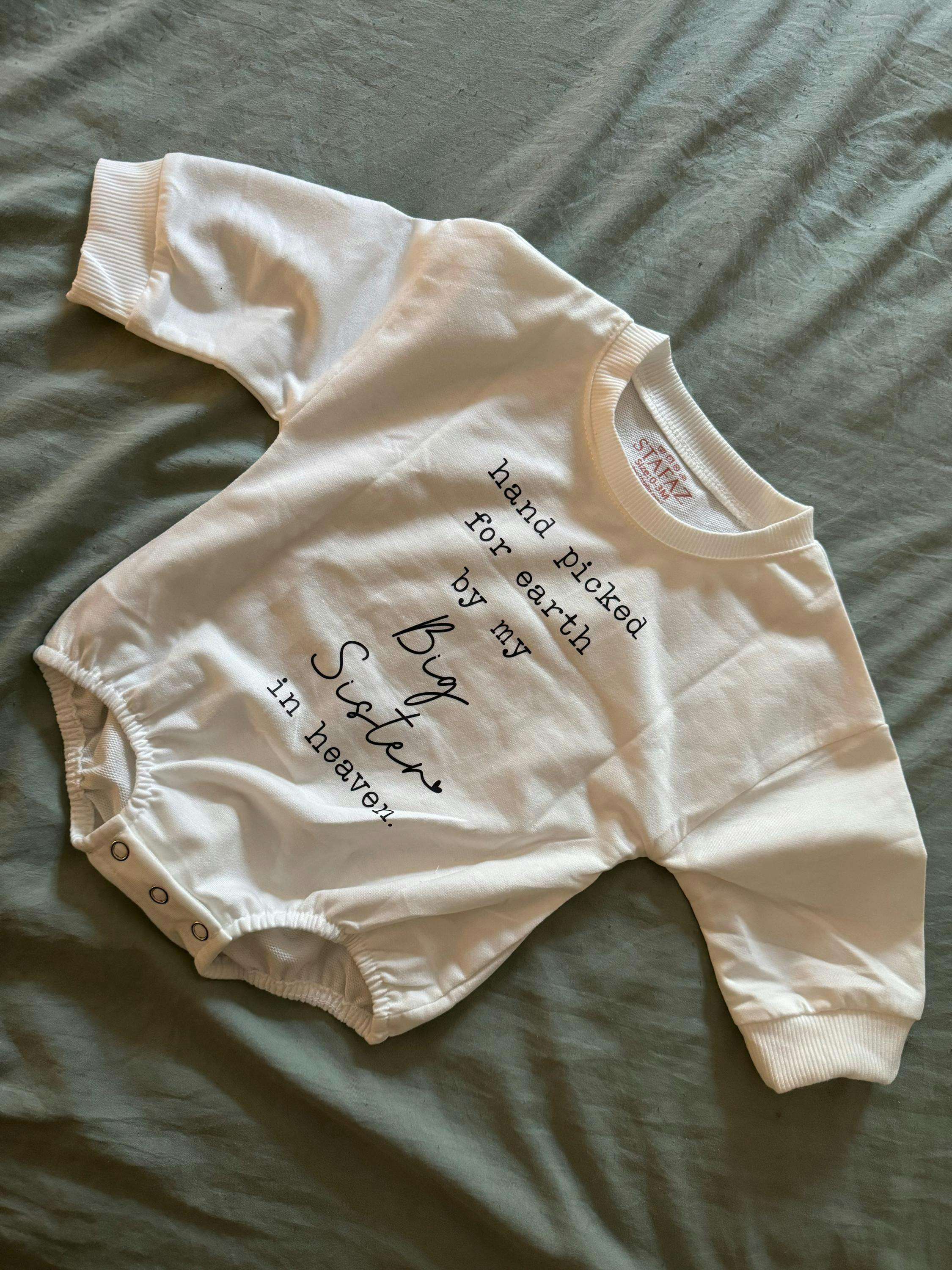 Hand Picked For Earth By Great Grandma In Heaven Romper Newborn Bodysuit Grandbaby Coming Home Outfit Sweet Black Text Baby Announcement Shower Gift