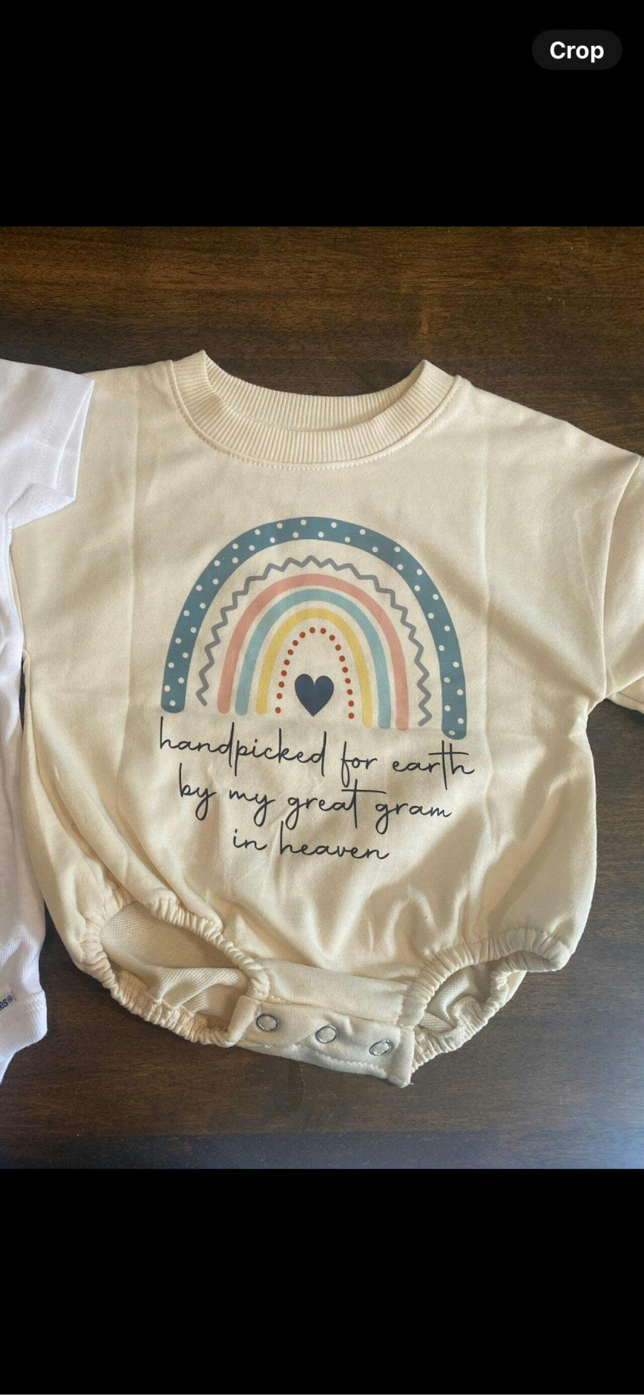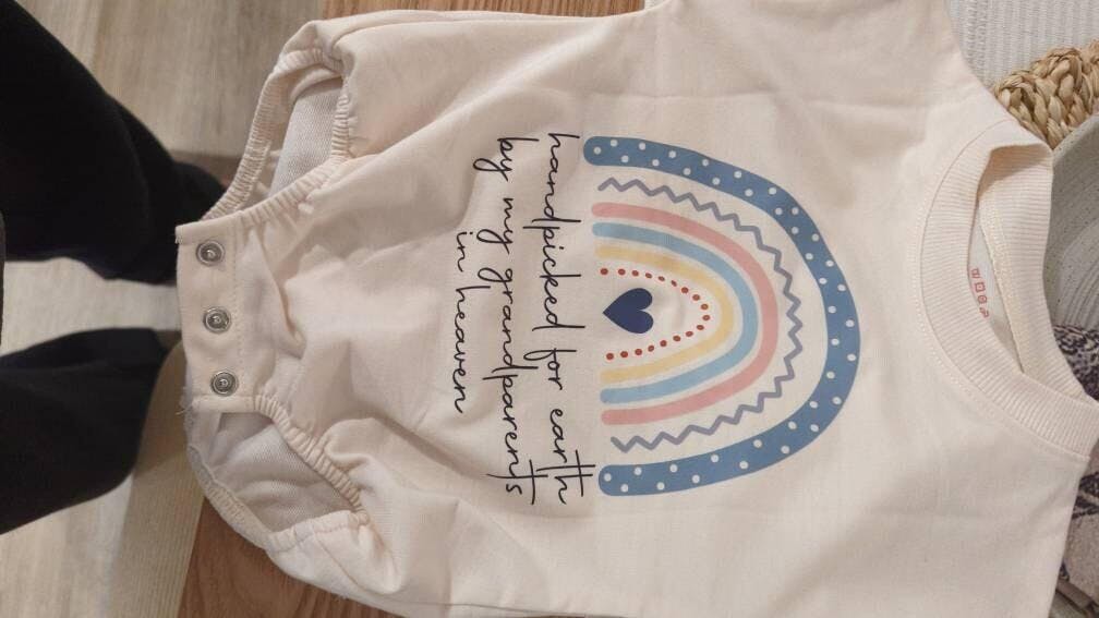This incredibly sweet romper is a tender tribute, lovingly "hand picked for earth by my Grandma in heaven." It's the perfect way to announce your rainbow baby or celebrate a precious new arrival with a touch of celestial remembrance. Crafted for comfort, this outfit captures a beautiful sentiment of enduring love, making it an unforgettable baby shower gift that cradles your little one in heavenly care. Imagine your tiny miracle wearing this, a gentle reminder of a guiding love from above, creating cherished memories from day one. It’s more than just clothing; it’s a story of hope, family, and a love that transcends time.