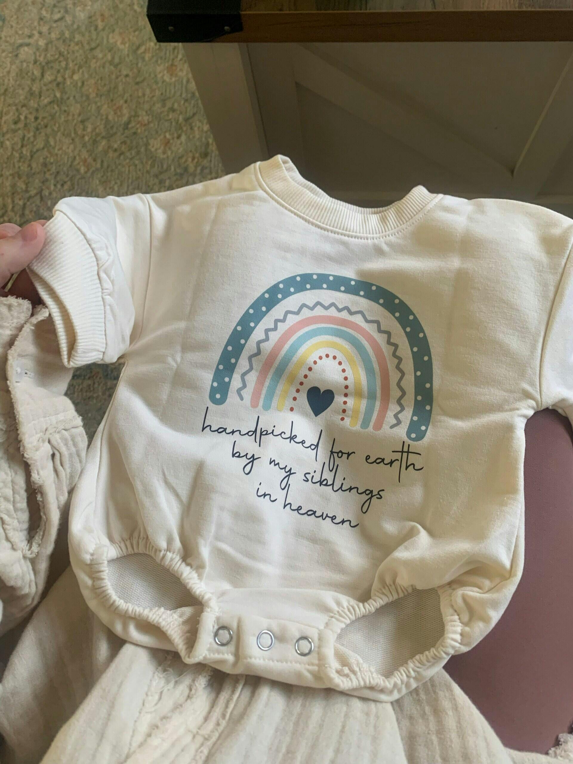 Hand Picked for Earth by Grandma in Heaven Rainbow Baby Romper Shower Gift Custom Name Newborn Clothes Angel Memorial