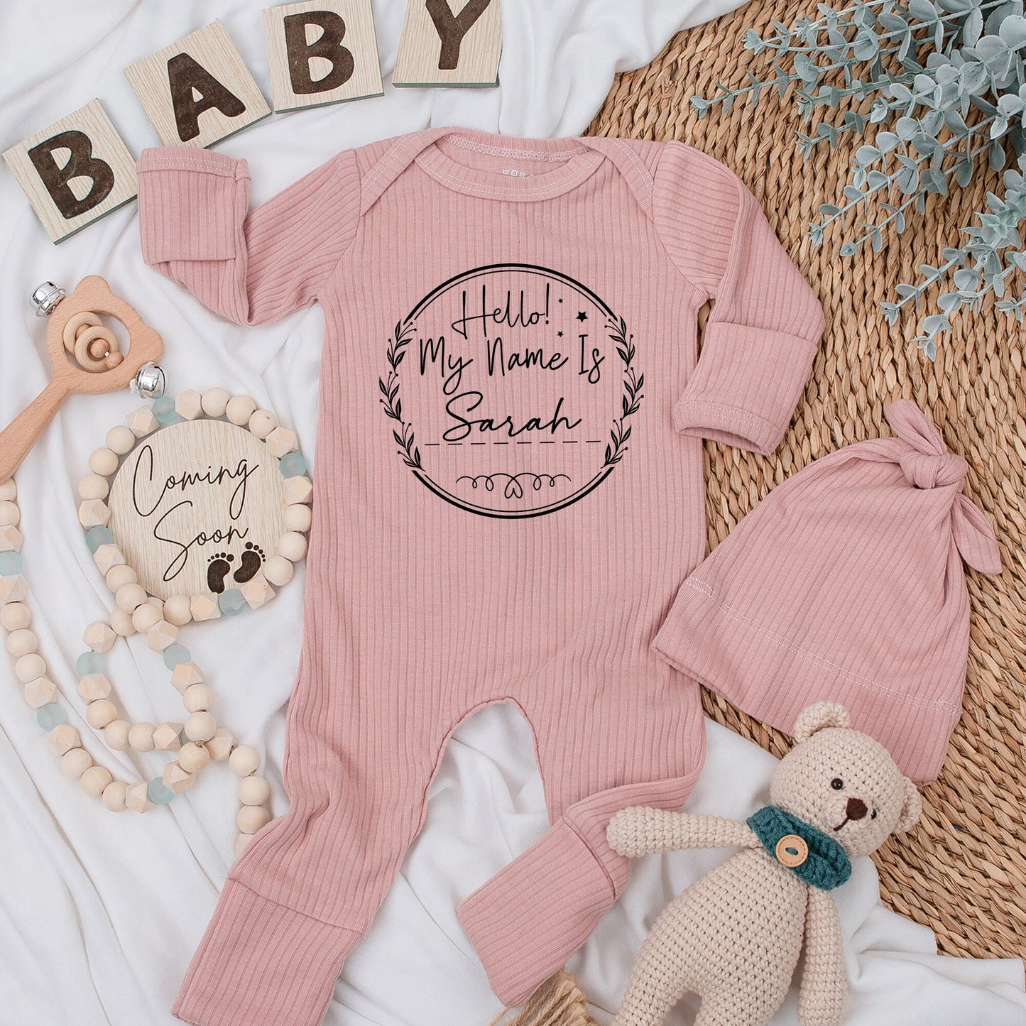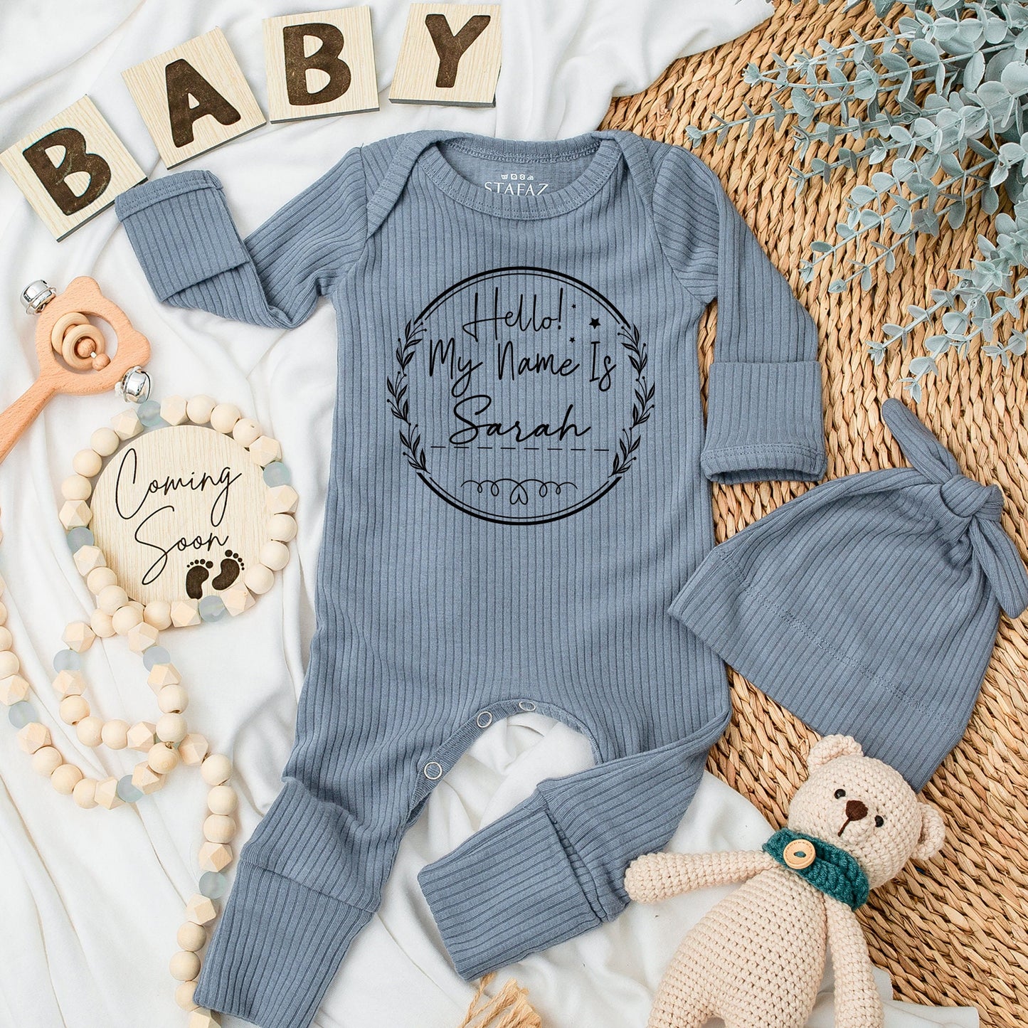 Hello Sarah Baby Bodysuit Personalized Name Baby Girl Boy Outfit Custom Wreath Stars Flourishes Newborn Gift