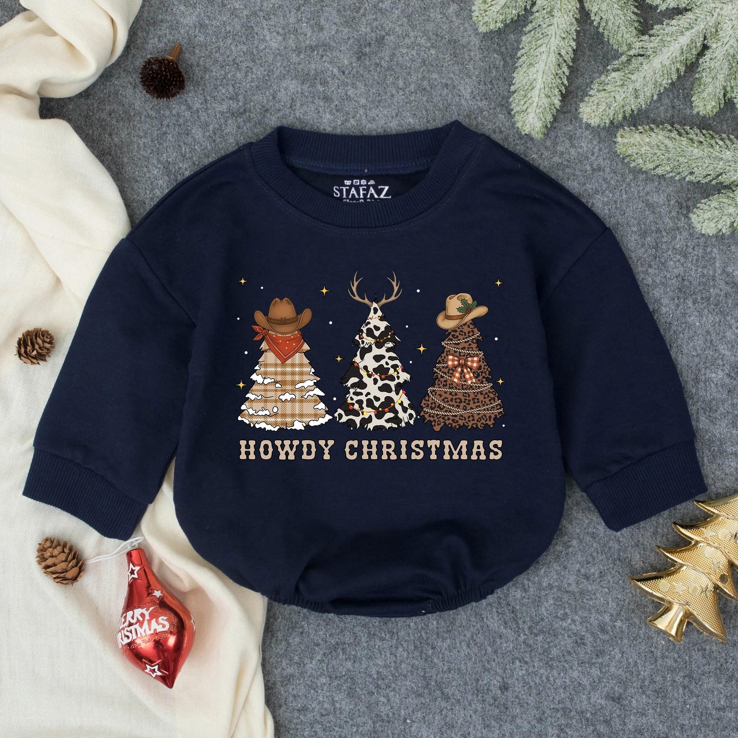 Howdy Christmas Baby Romper Western Cowboy Holiday Outfit Cow Print Plaid Pine Toddler Gift