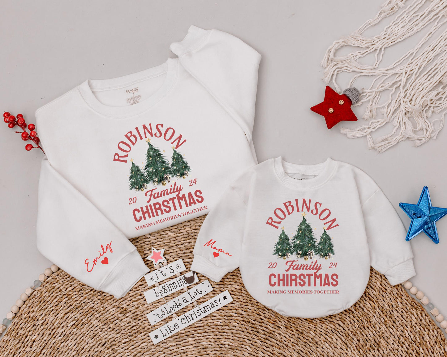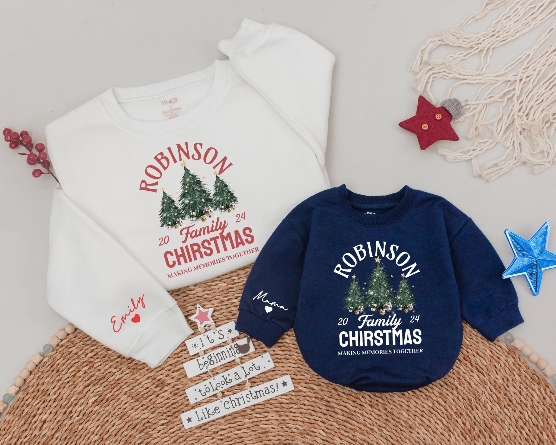 Matching Robinson Family Christmas Sweatshirts 2024, Custom Name Holiday Crewneck Shirts, Making Memories Together
