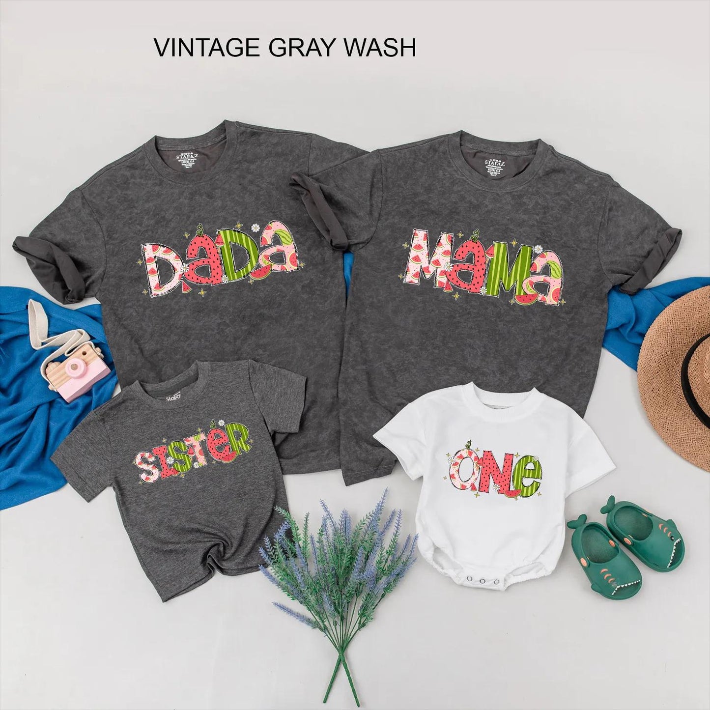 Celebrate your little one's first birthday with a splash of summer fun! Imagine capturing adorable memories with this matching watermelon-themed family outfit. The vibrant watermelon print on the bubble romper and toddler tee is perfect for a sunny birthday party or a sweet summer day. Picture your family beaming with joy, creating lasting memories in this delightful ensemble. These soft, comfortable outfits are ideal for a fun photoshoot or a casual family outing. Make this special day even sweeter with this charming, coordinated look that celebrates family and fun. Dress up your loved ones and capture the joy of this unforgettable milestone!