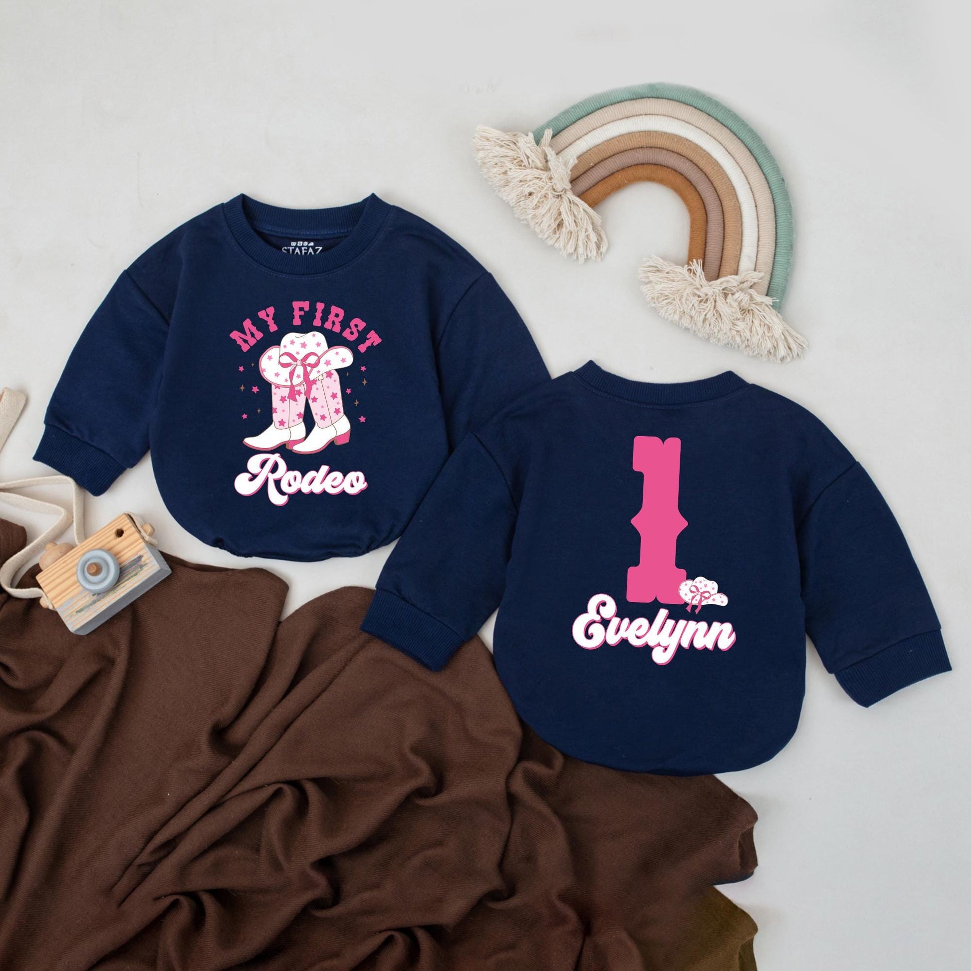 My First Rodeo Outfit Personalized Cowgirl Bubble Romper Western Baby Girl Clothes Retro Birthday Gift Toddler