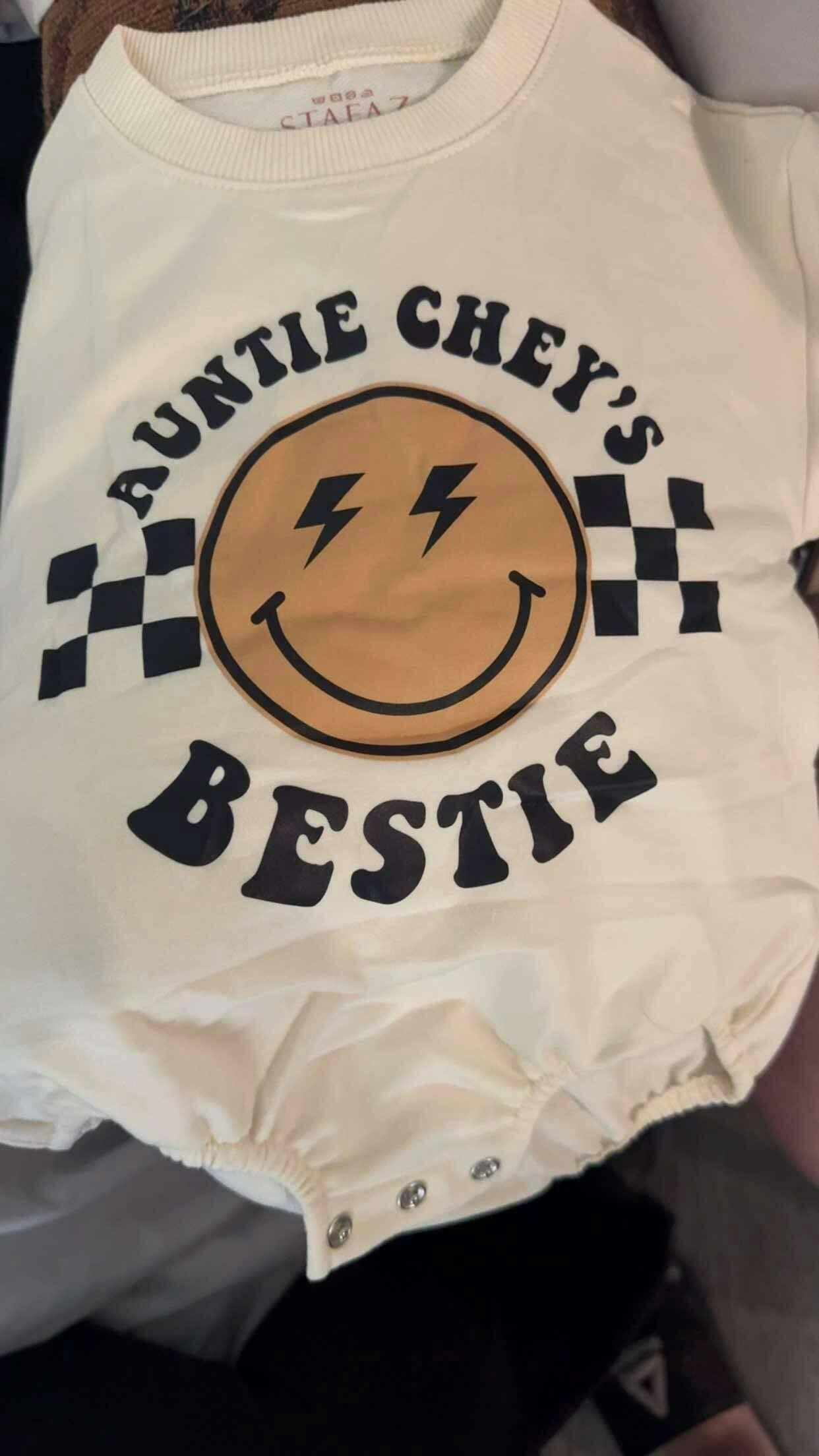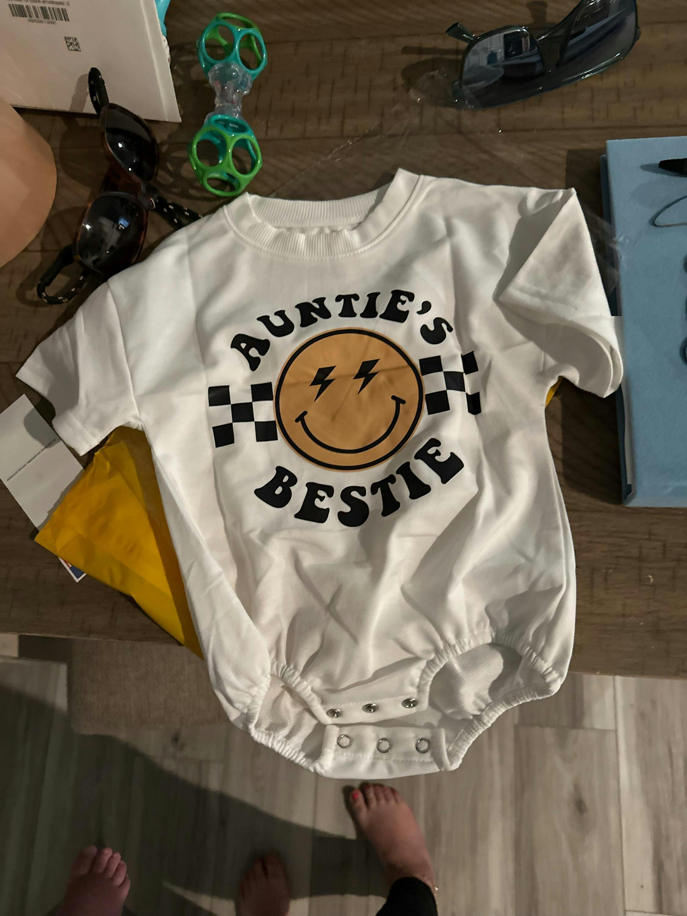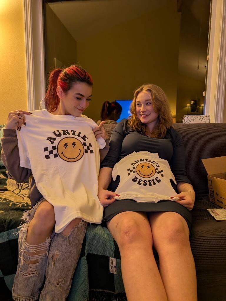 Super happy with my order! I bought the Auntie and Auntie's Bestie matching shirt and onesie as a gift and judging by the happy tears after my friend opened it, I'd say it was a huge success! Highly recommend this seller!