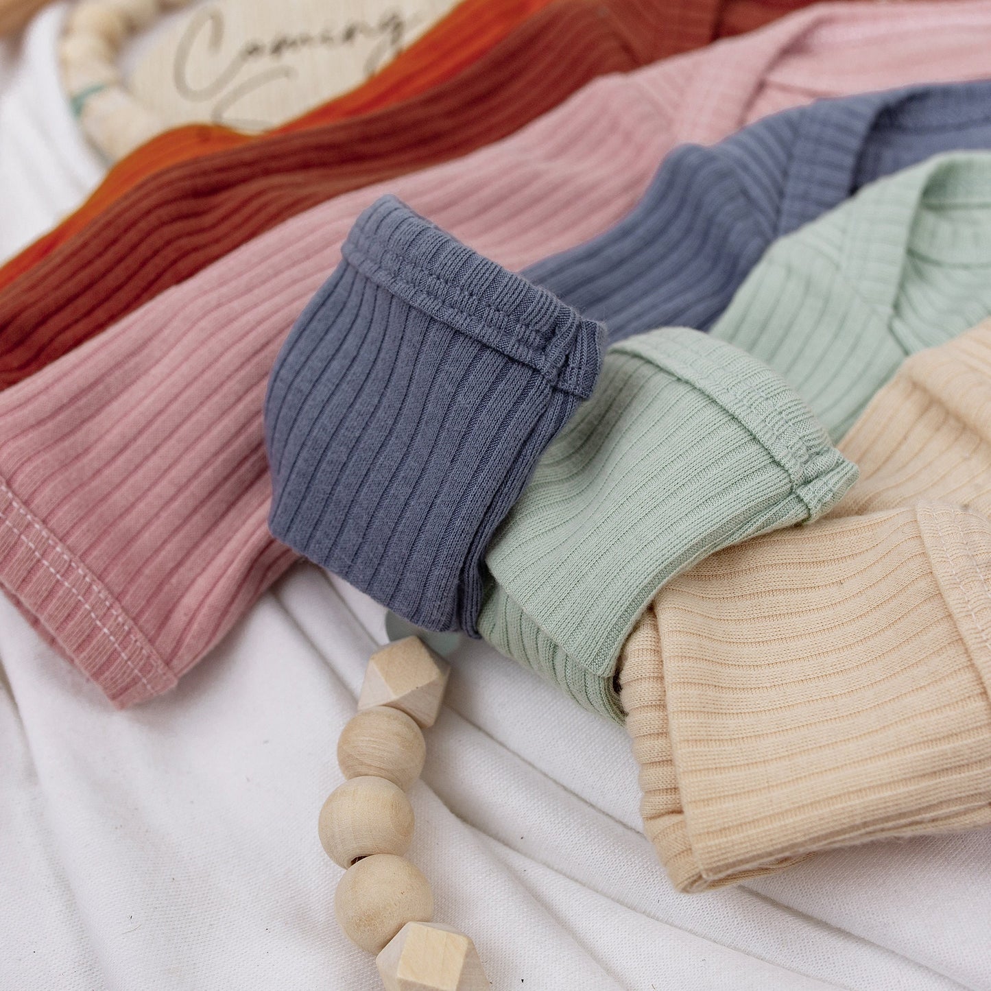 Personalized Auntie's Lil Bestie Baby Bodysuit & Hat Set Newborn Gift Coming Home Outfit Retro Muted Gold Pink Blue Heart Design Long Sleeve