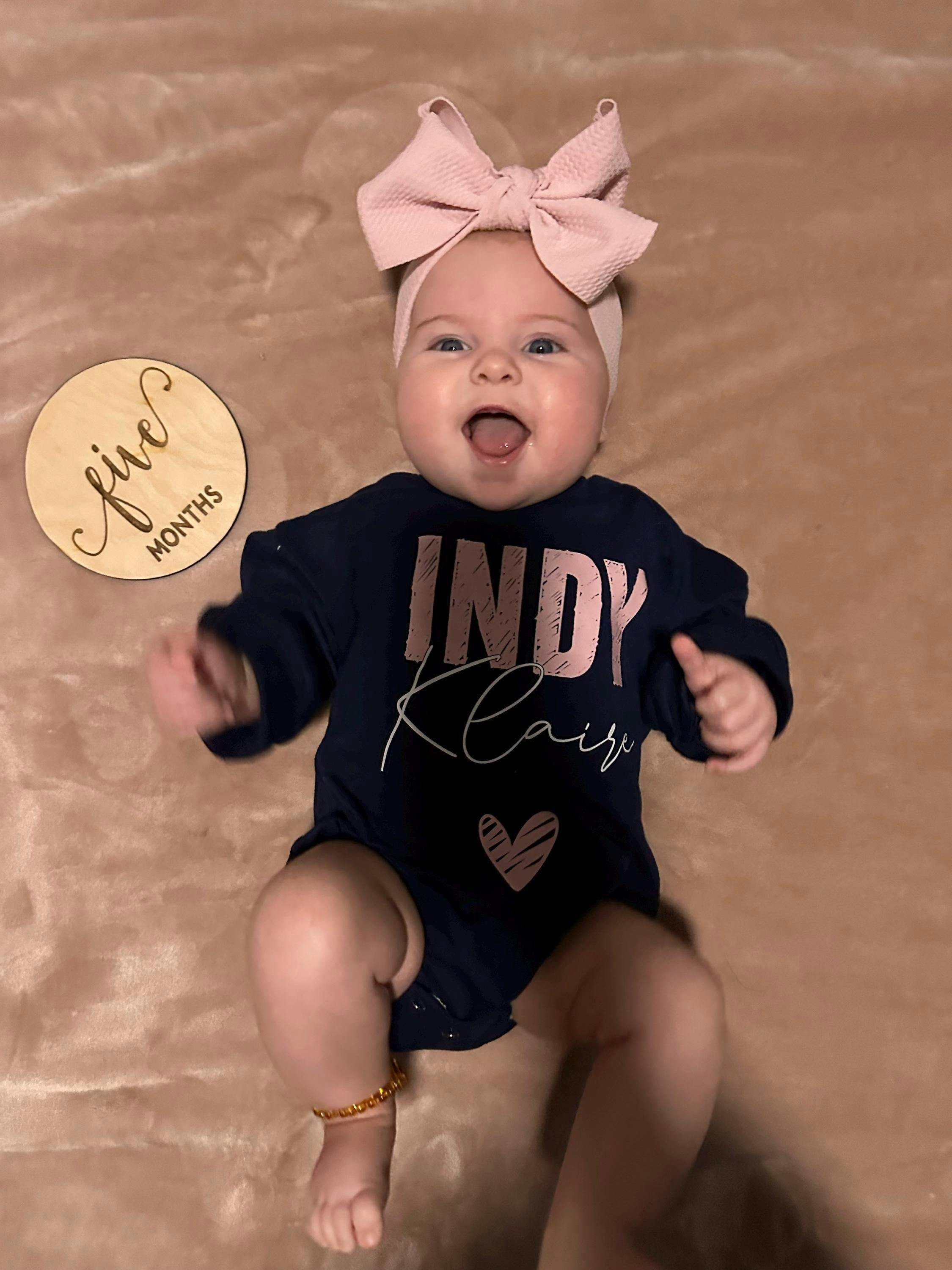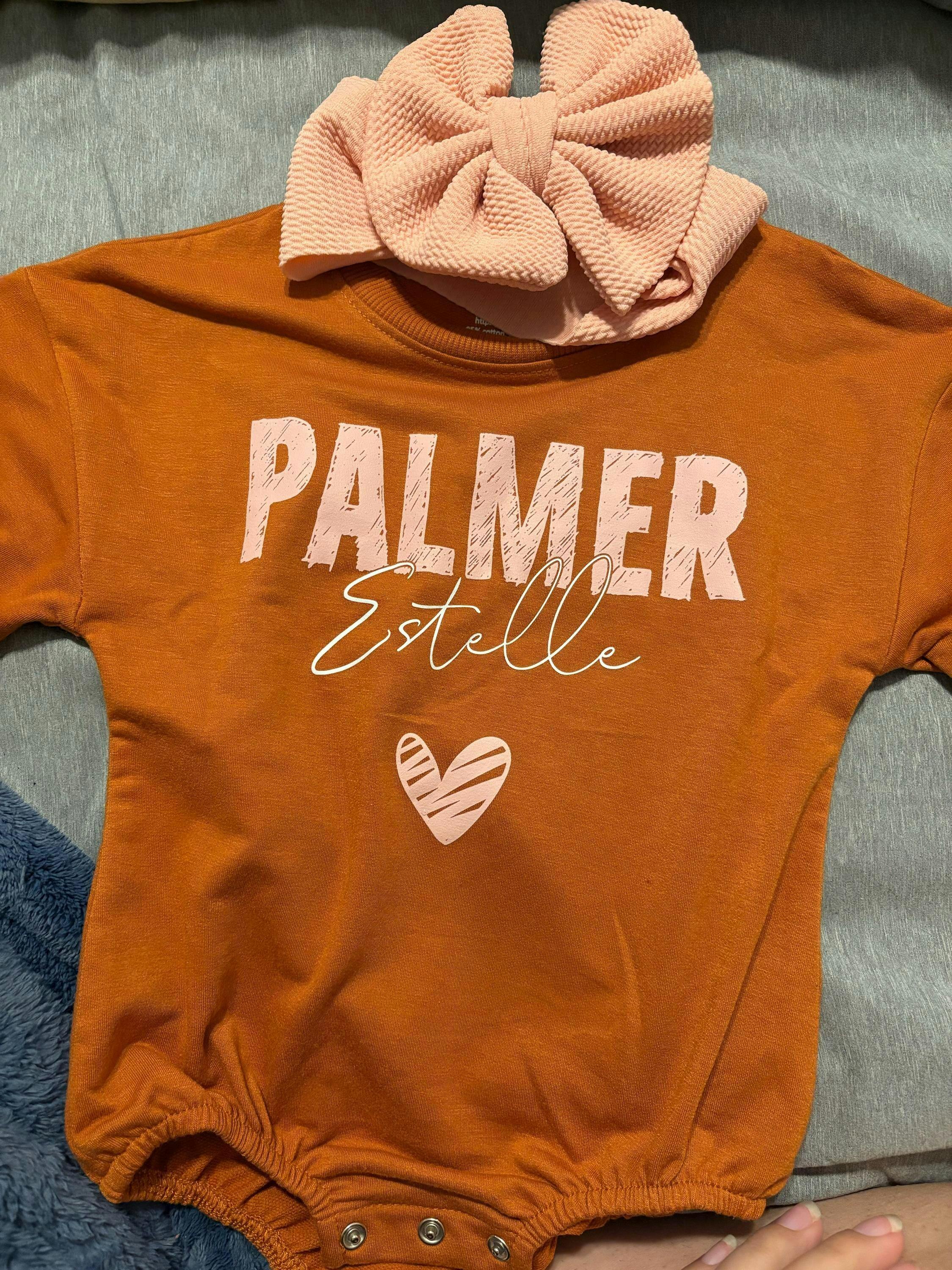 Imagine the sweet little moments when your baby girl wears this adorable romper! Featuring the names 'Charlie' and 'Arabella' in a playful design with a cute heart, it's a unique and personalized gift for any baby shower. Picture her laughing and playing in this comfortable and stylish romper, creating precious memories you'll cherish forever. The soft fabric ensures she stays cozy all day long, whether it's a casual day at home or a special outing. This custom romper is more than just clothing; it's a keepsake that celebrates her unique identity. Gift this charming piece and make a lasting impression, showing just how much you care. It's the perfect way to welcome her into the world with a touch of personalized love.