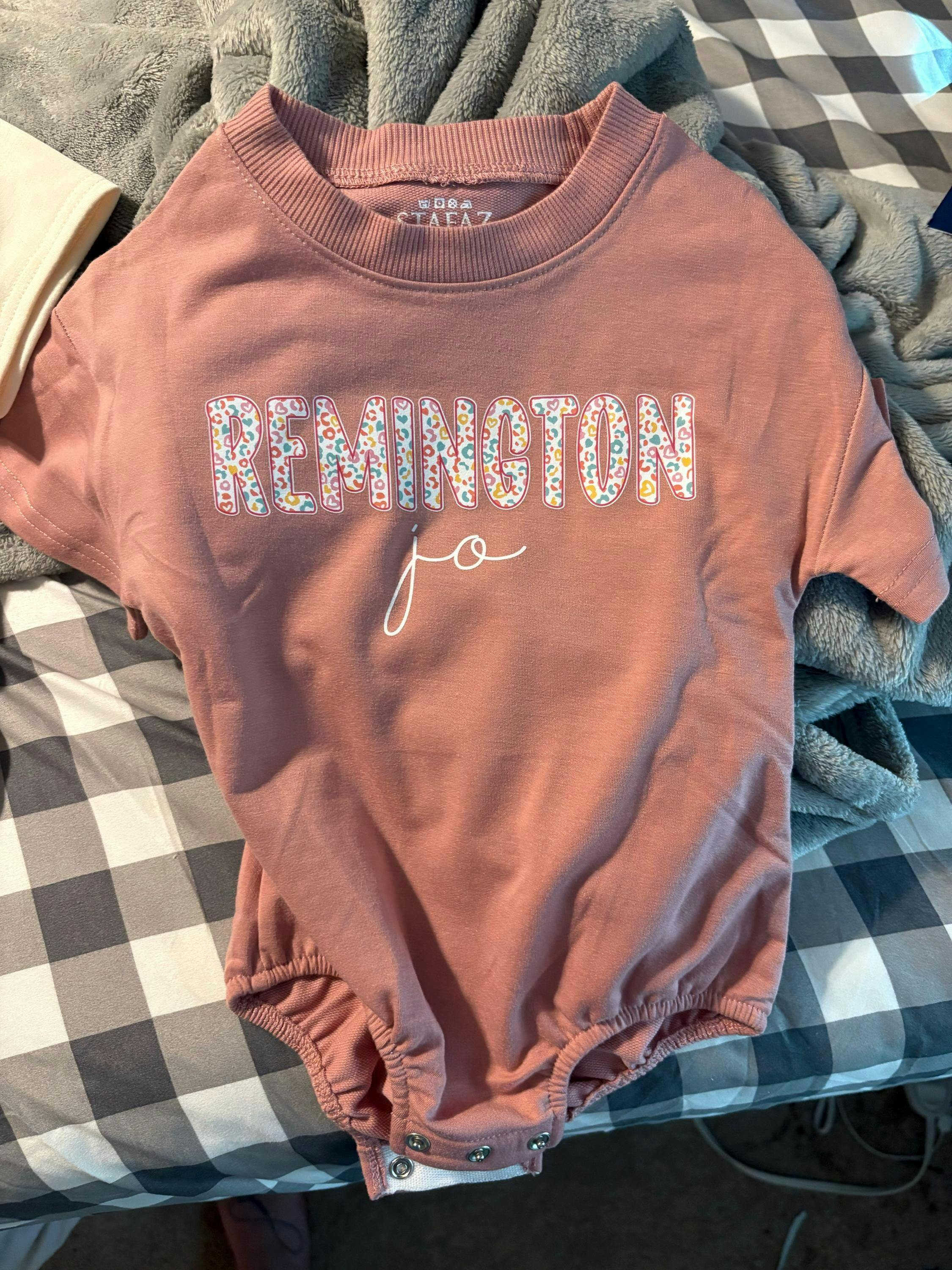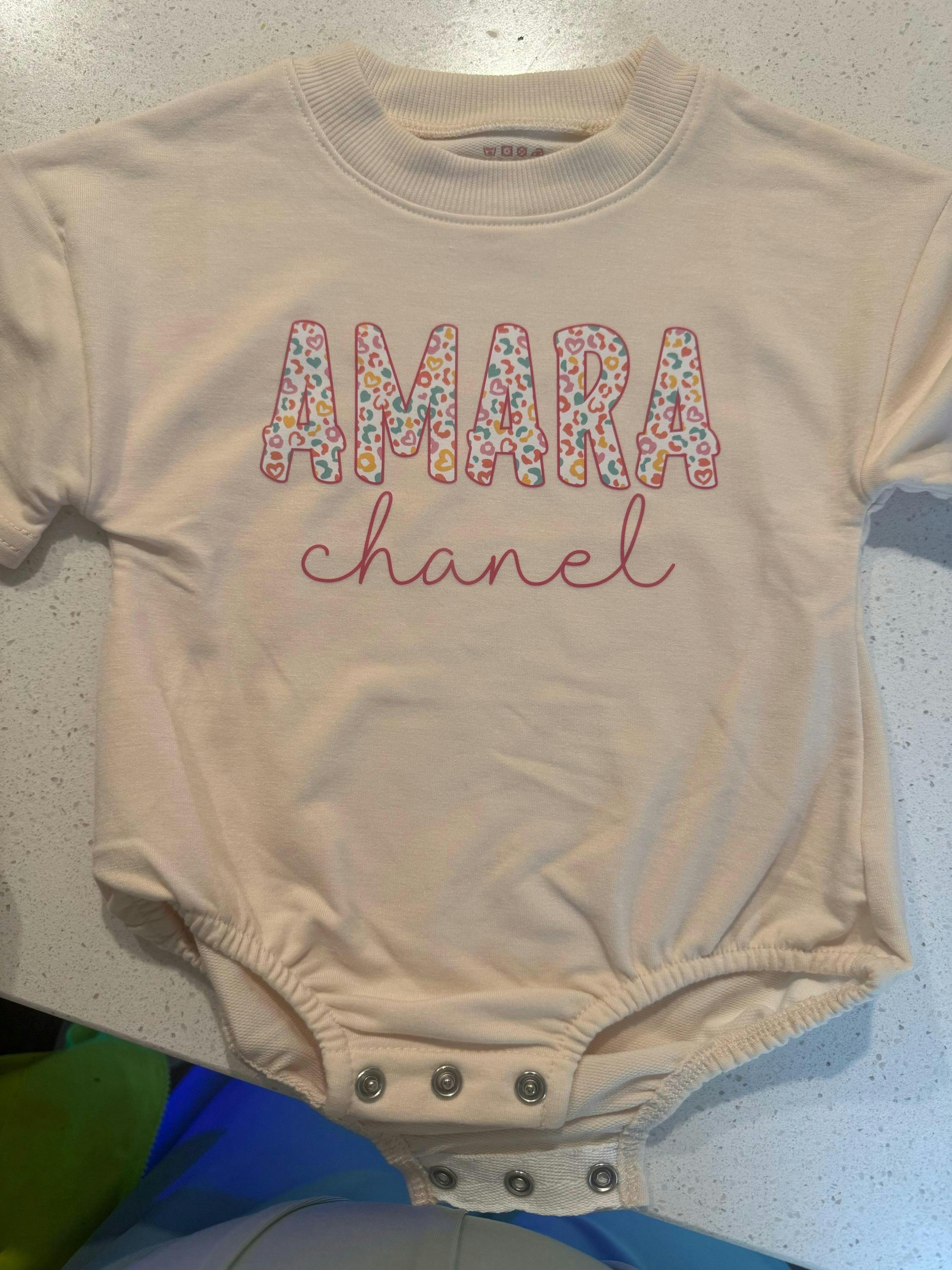 Imagine the sweetest smiles blossoming with this adorable romper! Featuring 'Baley' in a vibrant, heart-filled design with floral accents, and her name 'mae' in a delicate cursive, this outfit is pure joy. The playful mix of pink, blue, teal, orange, and yellow creates a cheerful vibe, perfect for a baby girl's special day. Picture her giggling during a birthday party or cuddled up with loved ones – a precious keepsake for any occasion. Give the gift of sweet memories with this custom romper, made with love!