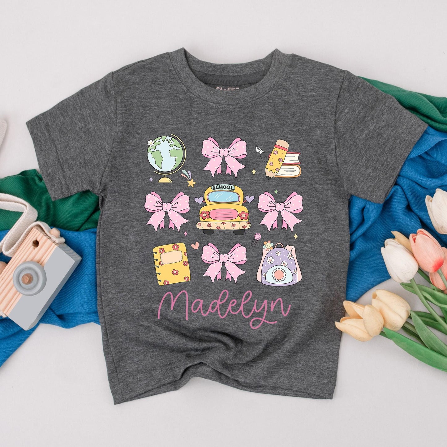Personalized Back to School T-Shirt for Kids, Custom Name First Day Outfit, Cute School Tees for Girl, Kindergarten, Preschool Gift Idea, Fun Design