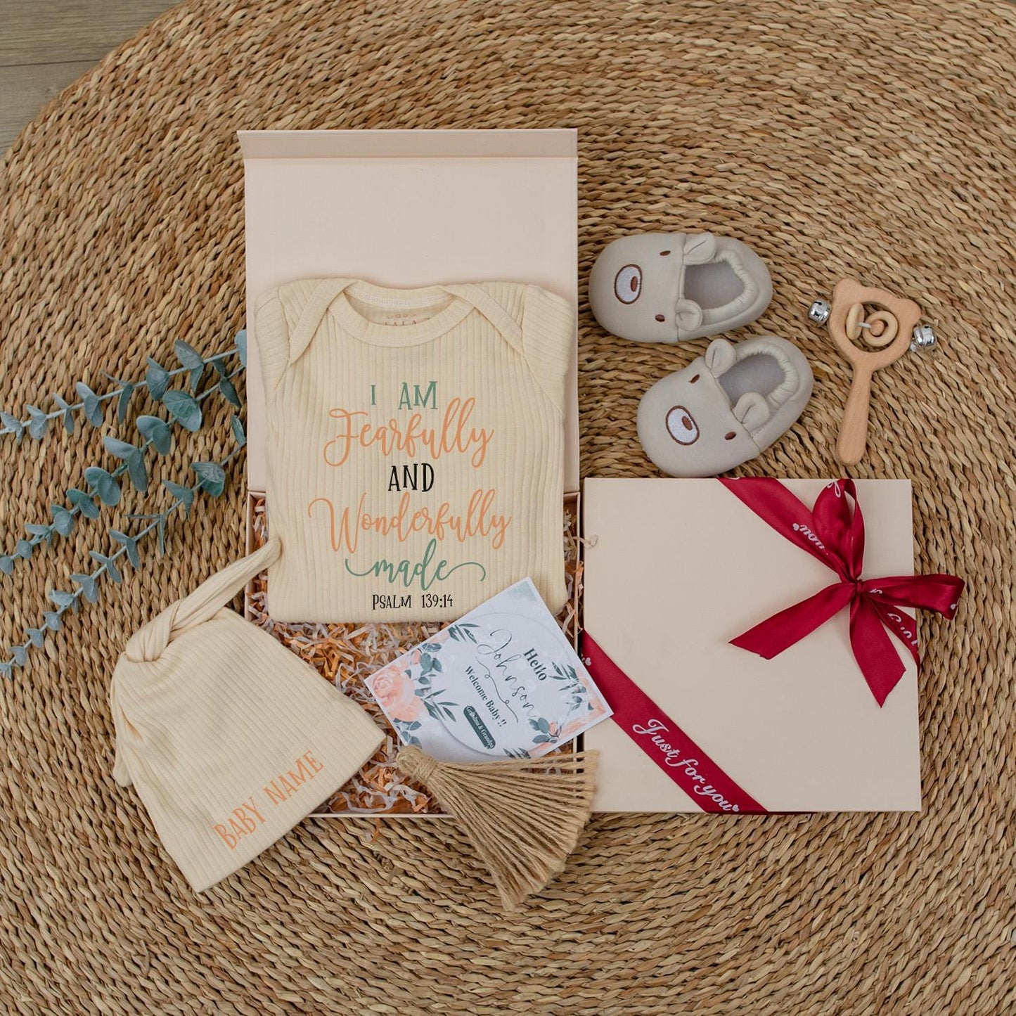 Personalized Christian Baby Bodysuit Romper 'Fearfully and Wonderfully Made' Newborn Coming Home Outfit Baby Shower Gift Gender Neutral Clothes