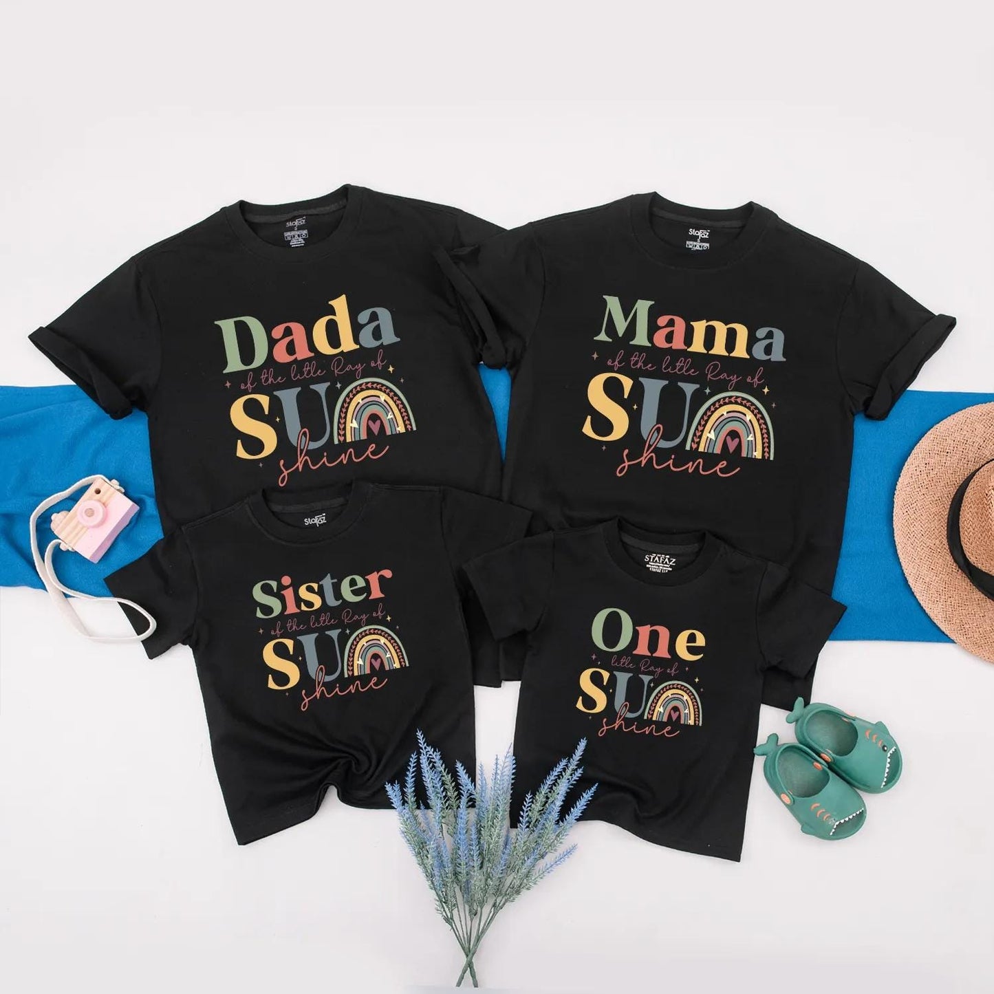 Personalized Little Ray of Sunshine 1st Birthday Family Matching Outfits Boho Rainbow Sun Theme Shirts Baby Toddler Girl Boy First Trip Gift