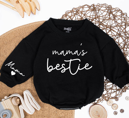 Personalized Mama and Mama's Bestie Sweatshirts with Sleeve Name Heart Detail Matching Mom Daughter Son Outfit New Mom Gift Mothers Day Minimalist Modern