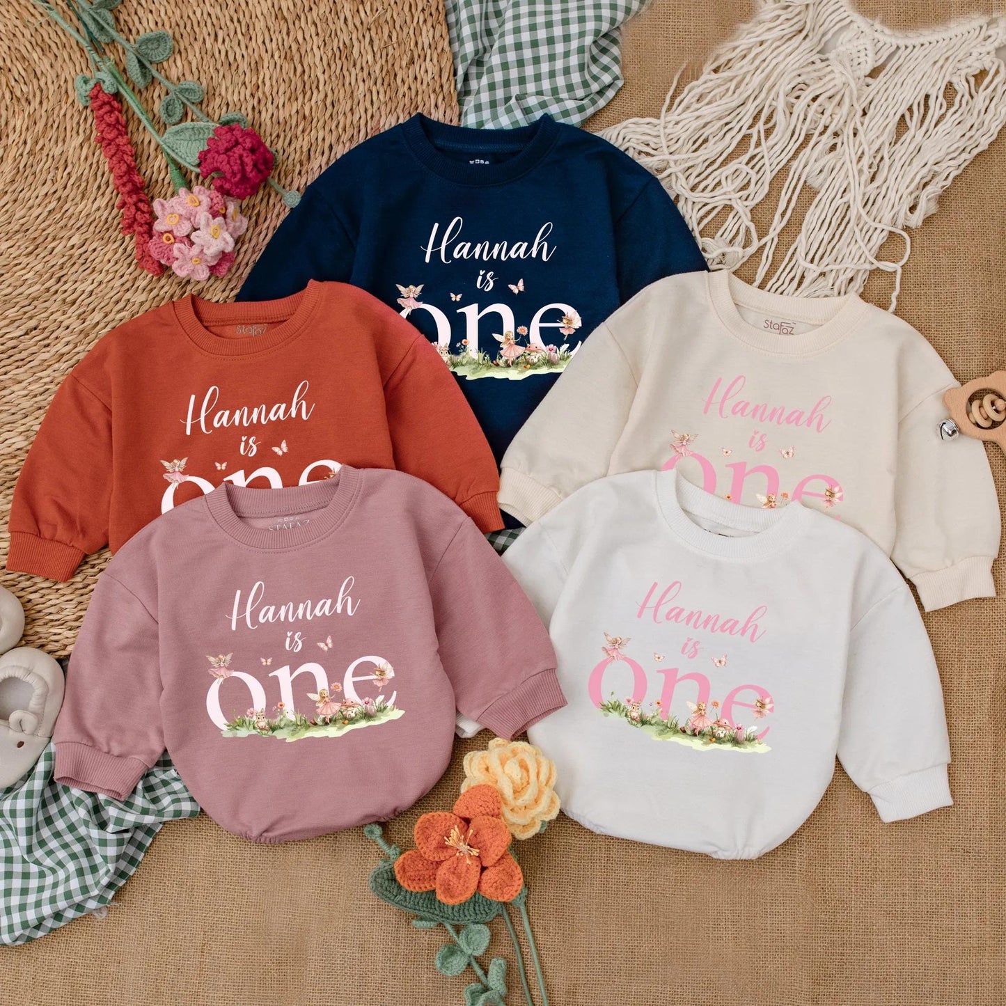 Pink Fairy First Birthday Romper One Little Fairy Baby Bodysuit Outfit for Girl 1st Birthday Gift with Whimsical Flower Accents