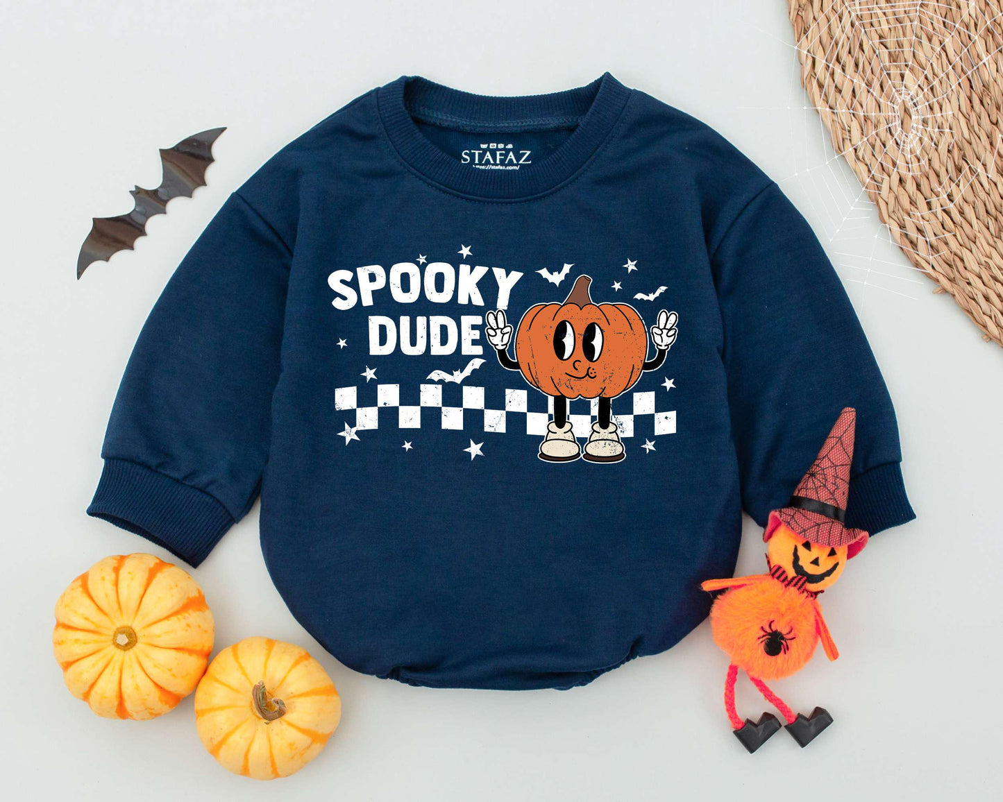 Dress your little one in our Retro Baby Halloween Sweatshirt, perfect for their first spooky season. This cute, autumn romper makes an ideal baby shower gift or Halloween costume, combining style and comfort. Celebrate "My First Halloween" with a cozy, funny, and personalized touch.