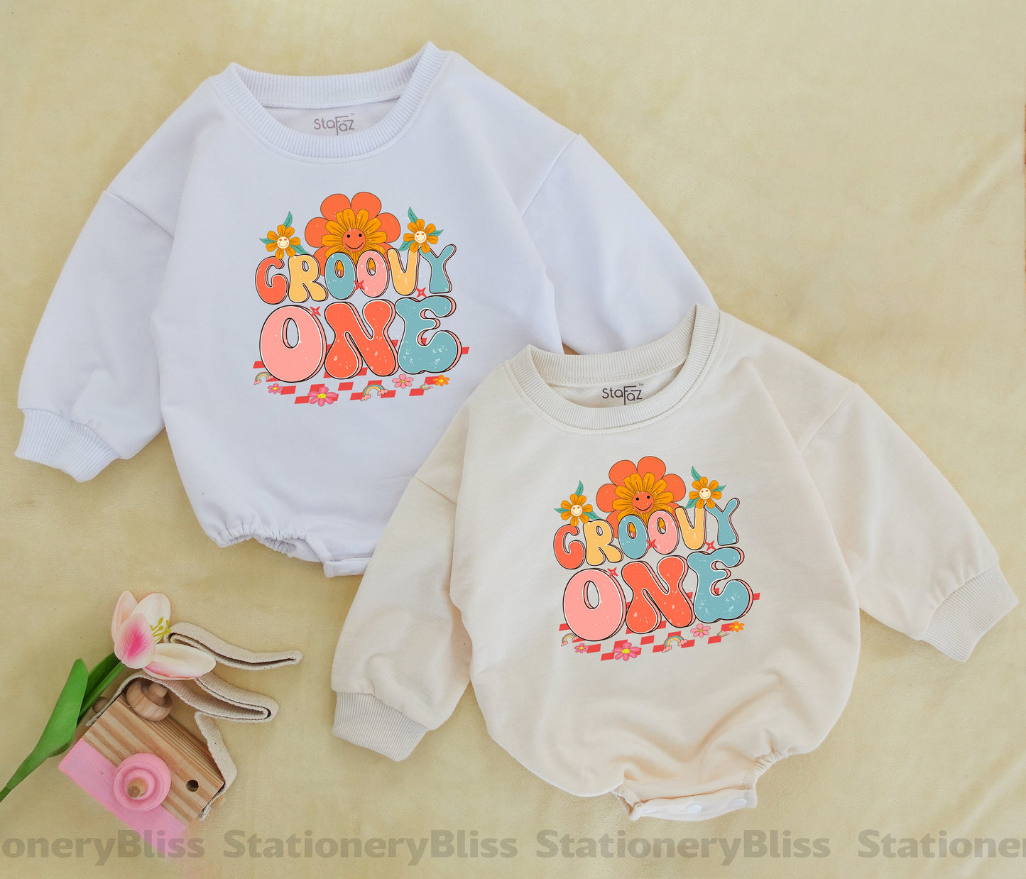 Dress your little one in this retro-inspired romper for her first birthday! With its groovy design and natural hues, this outfit makes a unique gift for baby showers and milestone events. Celebrate in style and comfort with this adorable mushroom-themed bodysuit.